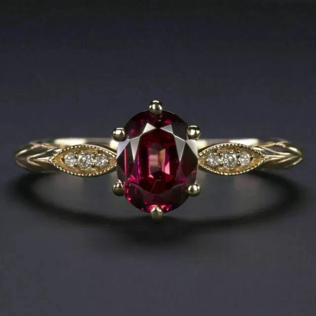 2Ct Oval Cut Simulated Red Garnet Women's Engagement Ring 14k Yellow Gold Plated