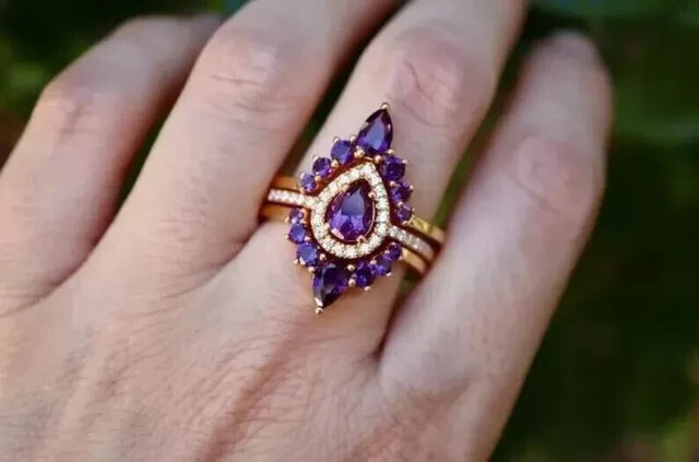 Theme: Beauty Personalize: Yes Base Metal: Sterling Silver Gemstone Clarity Grade: Slightly Included Number of Gemstones: As per picture Main Stone Depth: As per picture Setting Style: Prong Sizable: Yes Main Stone Width: As per picture Wholesale: Yes Cut Grade: Excellent Antique: No Style: Band Type: Ring Seller Warranty: Yes Material: Gemstone, Stone, Metal Signed: No Secondary Stone: Diamond Main Stone Creation: Simulated Country/Region of Manufacture: India Main Stone Length: As per picture Metal Purity: 925 Band Width: As per picture Main Stone Color: Purple Color: Yellow Brand: karunas-76 Metal: Sterling Silver Customized: Yes Occasion: Anniversary, Birthday, Christmas, Engagement, Graduation, Mother's Day, Valentine's Day, Wedding Country of Origin: India Main Stone: Amethyst Shape: Round Features: Engraved, Nickel-Free Main Stone Shape: Pear Ring Size: All ring size available Handmade: Yes Vintage: No Era: Undated