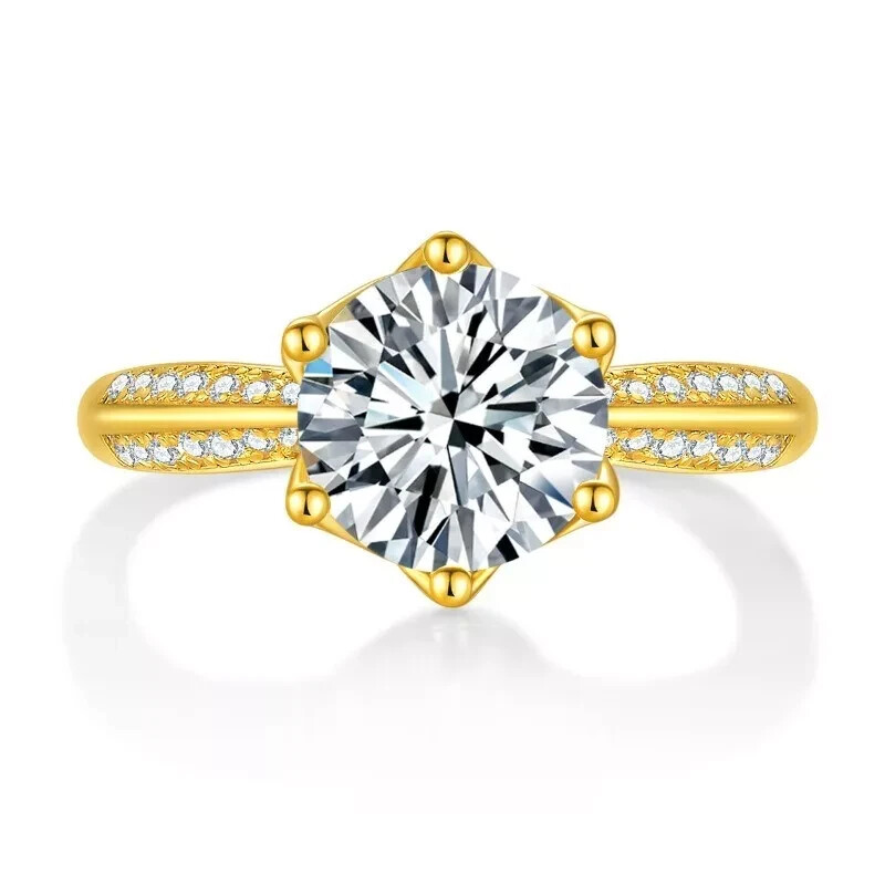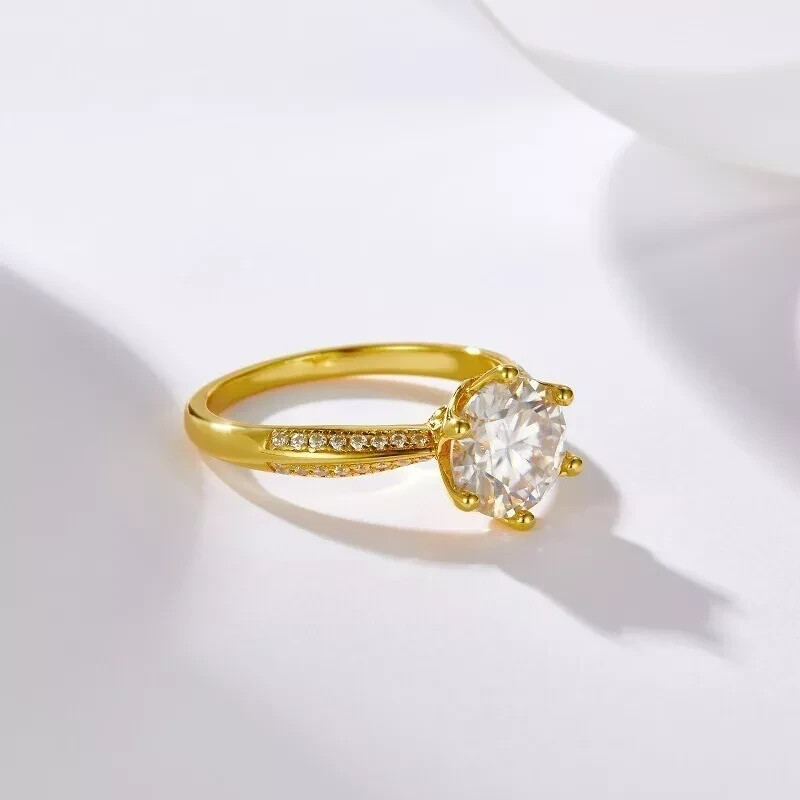 Elevate your special moments with the exquisite 2Ct Round Cut Natural Moissanite Women's Wedding Ring, beautifully set in 14k Yellow Gold Plating. This ring, crafted with the utmost precision, embodies the epitome of timeless elegance and sophistication. The gleaming gold hue, complemented by the sparkling moissanite stone, creates a captivating visual appeal that promises to enchant. Designed with love and attention to detail, this ring is a testament to skilled craftsmanship, available in all ring sizes to ensure a perfect fit. Whether it's a symbol of your eternal bond or a testament to your personal style, this ring, personalized to your unique preferences, is a true reflection of your love and commitment to yourself or your significant other.