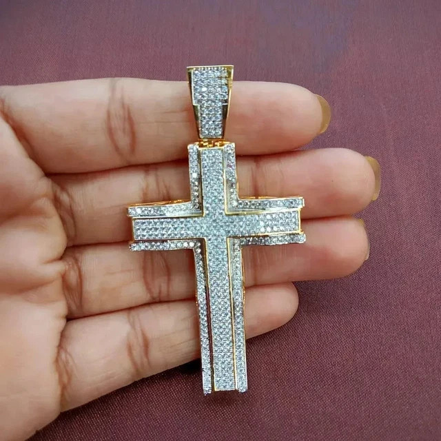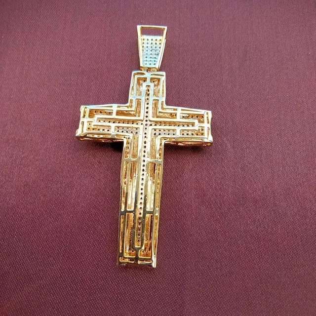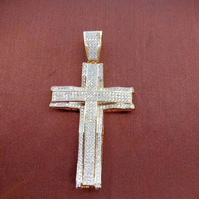 $ 105.342.10Ct Round Cut Real Moissanite Drip Cross Men's Pendant 14K White Gold Plated