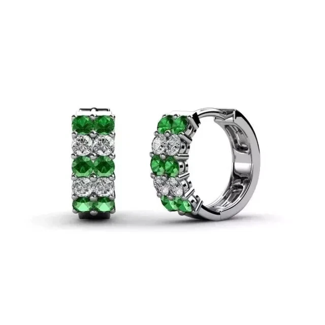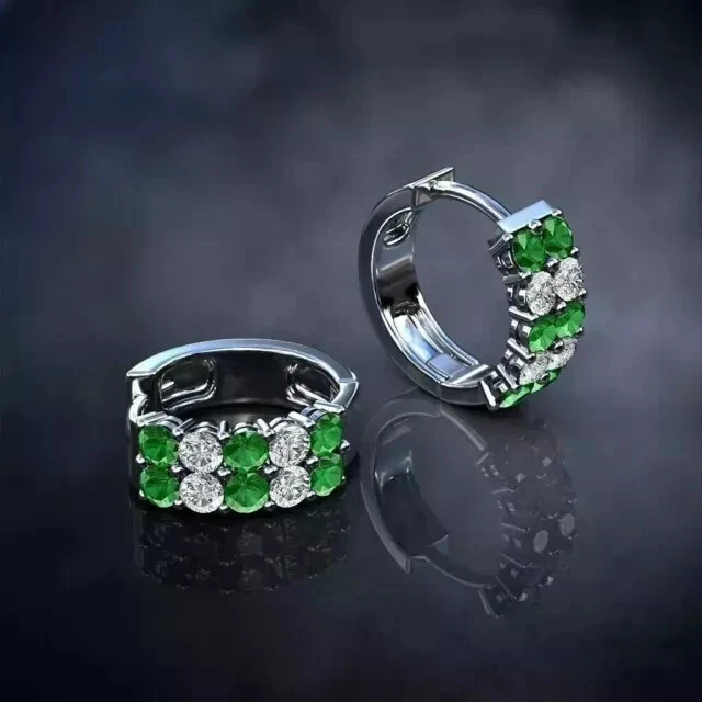 2Ct Round Cut Simulated Emerald Trendy Womens Hoop Earrings 14KWhite Gold Plated