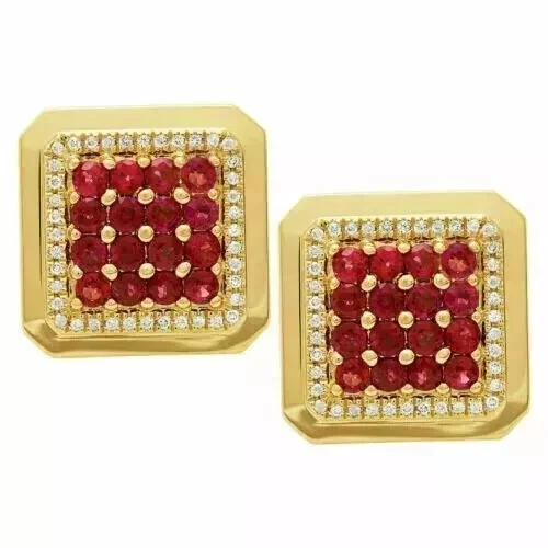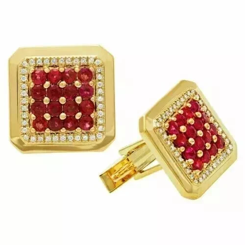2Ct Round Lab Created Red Garnet Men's Wedding Cufflinks 14K Yellow Gold Plated