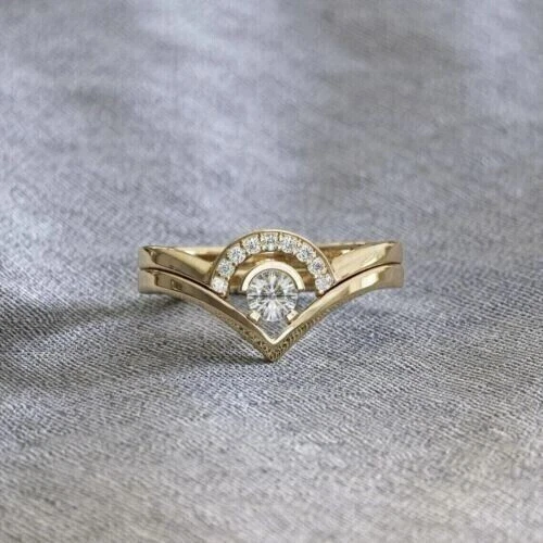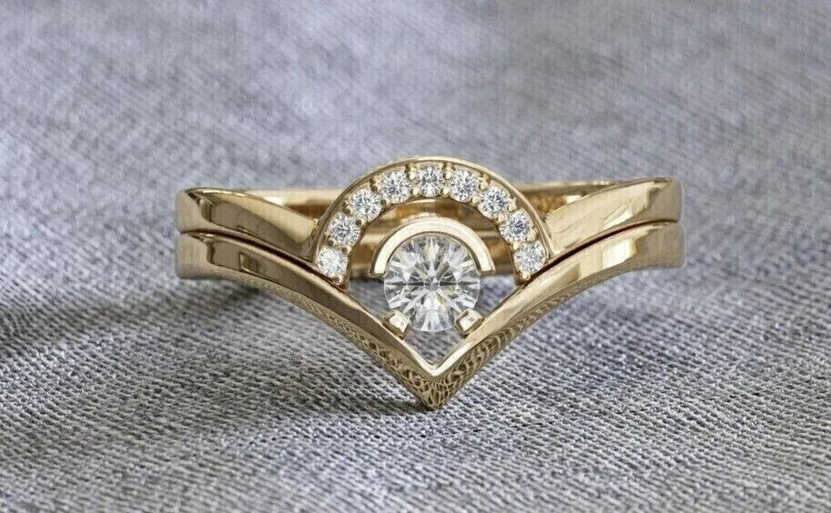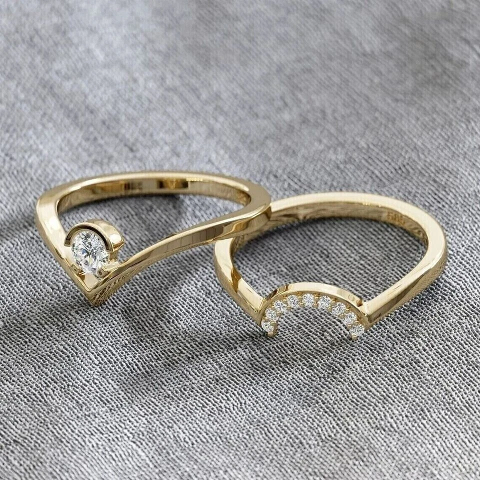 2Ct Round Simulated Diamond Curved Guard Bridal Set Ring 14K Yellow Gold Plated