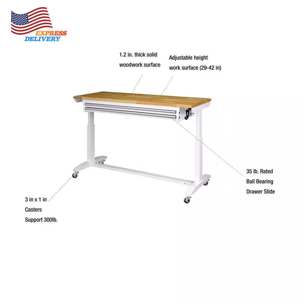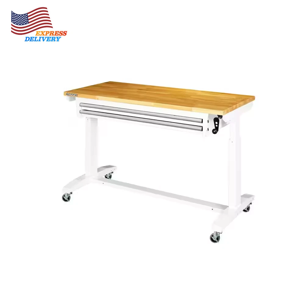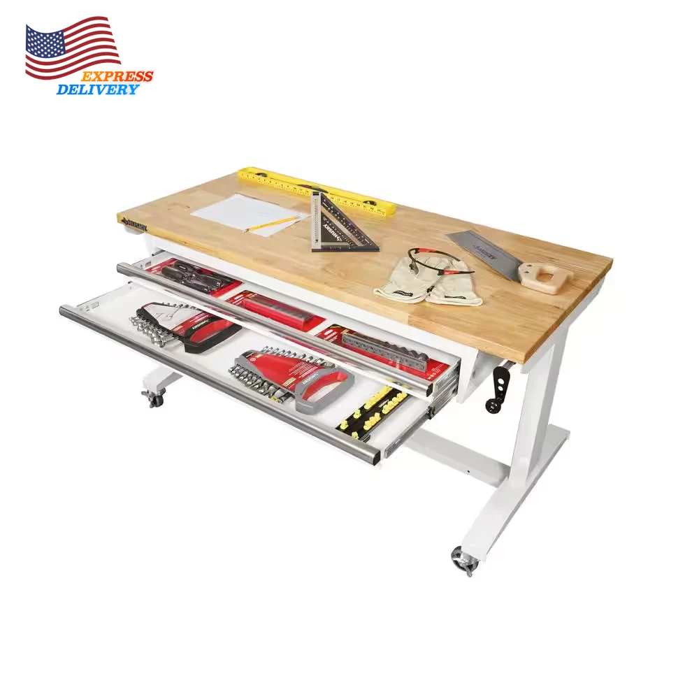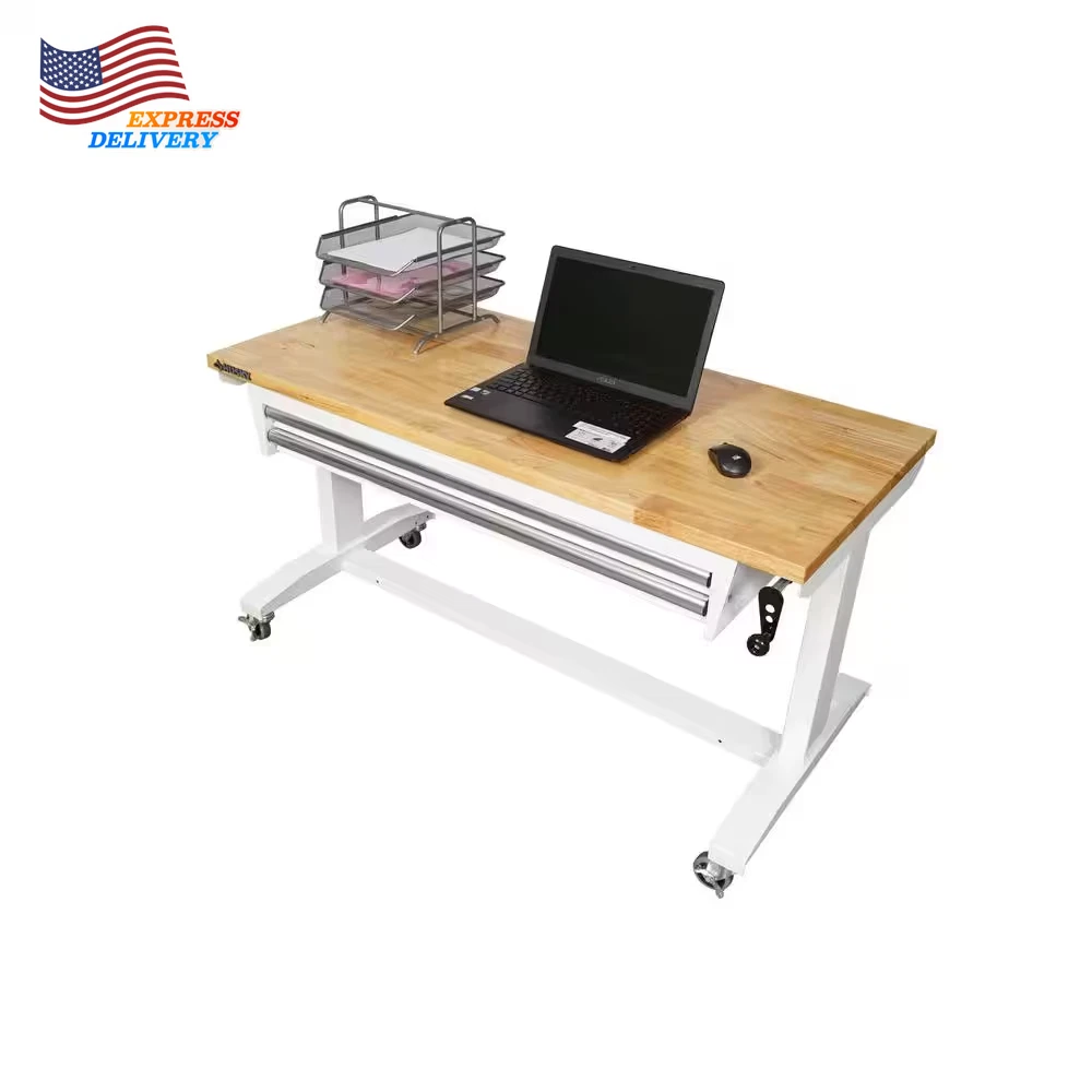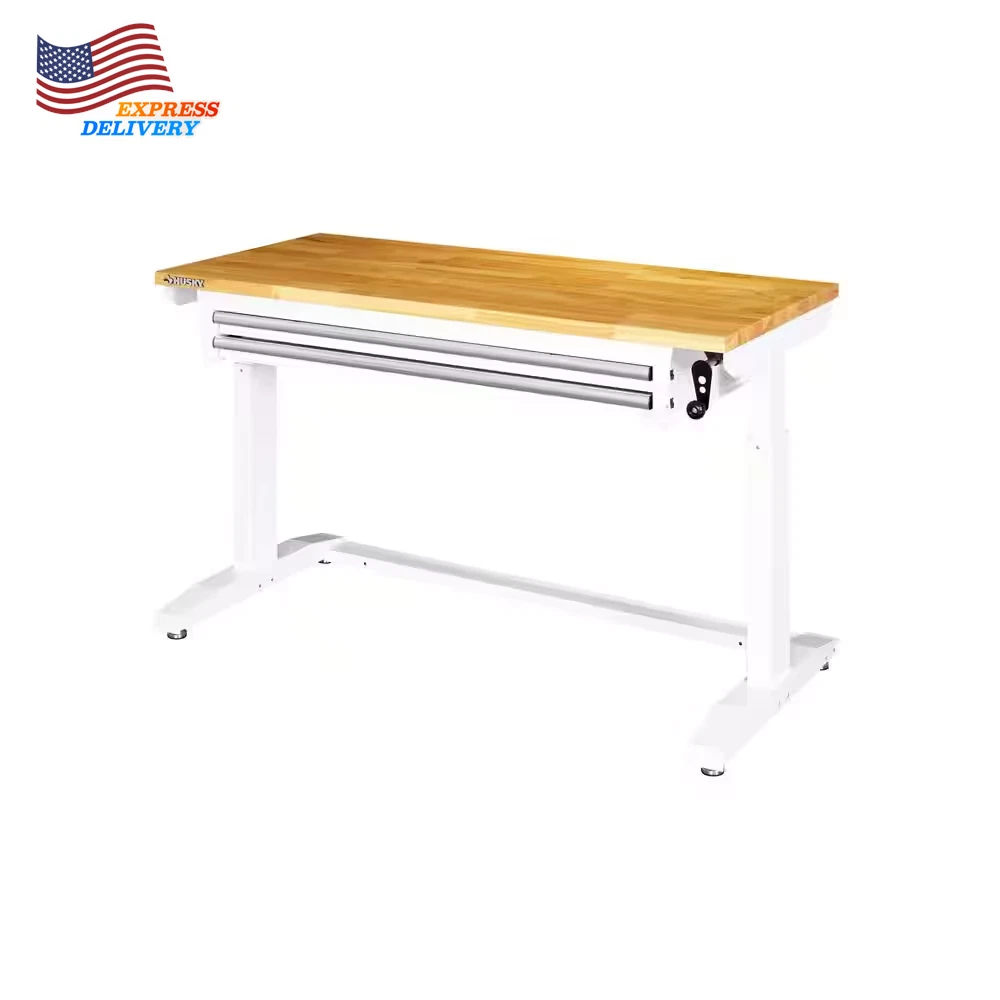 Store New Arrivals Add to Favorite View Feedback Contact 2 Drawer Adjustable Height Workbench Table with Solid Wood Top 52 In W X 24 In D Description Adjustable Workbench Height Adjustable Height Assembly Required Yes Assembly Type Full Assembly Required Color Family White Features Adjustable Height Frame Material Steel Included Drawers Number of Drawers 2 Drawers Product Weight (lb) 111.79 lb Returnable 90-Day Style Industrial Weight Capacity (lb) 300 lb Assembled Depth (in) 24.00 in Assembled Height (in) 29.00 in Assembled Width (in) 52.00 in Adjustable workbench ranges from 26 in. to 42 in. tall Top: 300 lb. weight capacity; Workbench drawers: 35 lb. capacity Can be used as a home office desk or workstation The Husky 52 in. Adjustable-Height Work Table with 2-Drawers is a multi-functional adjustable workbench with drawers work station that features a manual crank that can raise and lower the work surface. The 1.2 in. thick solid wood top offers plenty of space on the 52 in. W x 24 in. D work surface. The Adjustable-Height Work Table with drawers can be assembled with either the four, 3 in. x 1 in. casters for mobility or attach the 4 leveling feet for use as a stationary table or desk. This Husky adjustable workbench with drawers has plenty of uses around the home, office, hobby room or garage. It is designed with a 300 lbs. weight capacity and an overhang so that you can easily attach your vise grips or clamps while working on a project. This 52 in. Husky Adjustable-Height Work Table with drawers contemporary, adjustable-height feature allows you to have the flexibility to sit or stand while working. The ergonomic design could also reduce eye and back strain and boost your productivity. The crossbar support can be installed in 2 different locations, depending on your preference. Install the support at the center of the table for an open, 2-sided work area. Or install it along the back of the legs to allow you the versatility of stowing your tool storage and rolling cabinets underneath to further organize your work space. Table height adjusts from a 26 in. to 39 in. H when using the included leveling feet Table height adjusts from a 29 in. to a 42 in. H when using the included casters 3 mm steel frame construction with a powder-coated finish to resist rust and corrosion 35 lbs. load capacity drawers 3 in. x 1 in. PPR swivel casters with locking brakes allow ease in mobility 4 leveling feet can be installed to use the table as stationary work area 1.2 in. T solid woodwork surface with protective coating Multiple uses and applications Drawers: 40 in. W x 16 in. D x 2.25 in. H Assembled dimensions (approximate): 52 in. W x 24 in. D x 26 in. to 42 in. H and weighs 111.79 lbs. Packaged/shipping dimensions (approximate): 59.44 in. W x 36.41 in. D x 11.81 in. H and weighs 134.73 lbs. ABOUT US We offer the best prices around on high quality products. Our E-store includes media such as books, movies, music and games while offering electronics, toys, sporting apparel, clothing, tools, general home, garden items and more. SHIPPING We are always working hard to ensure your package arrives as soon as possible. Please understand that some factors like weather, high postal traffic, and the performance of shipping companies are outside of our control. We offer free shipping to the lower 48 states and ship within 2 business days of payment, usually sooner. We do not accept P.O. Boxes. Please provide a physical address. For shipping outside of the continental USA, we only use eBay's Global Shipping Program.The item is shipped to KY and then sent to the rest of the world. International customers are responsible for all duties and taxes. Continue to check out in order to calculate costs for shipping the item to your country. Messages regarding eBay's Global Shipping Program MUST be directed at eBay EXCLUSIVELY. RETURNS We offer a 30-Day Return Policy on items which you are not completely satisfied with. You have the option for a full-refund or an exchange of the item. No returns are available on items shipped outside of the USA. PAYMENT We accept PayPal. CONTACT US This page content is yet to come Please ad us to your favorite seller and visit again later Thank You CUSTOMER SATISFACTION We try our very best to make sure every customer is completely satisfied. If there's a problem, message us! We're happy to help. WE ACCEPT Copyright © 2021 AutoDS. | All Rights Reserved