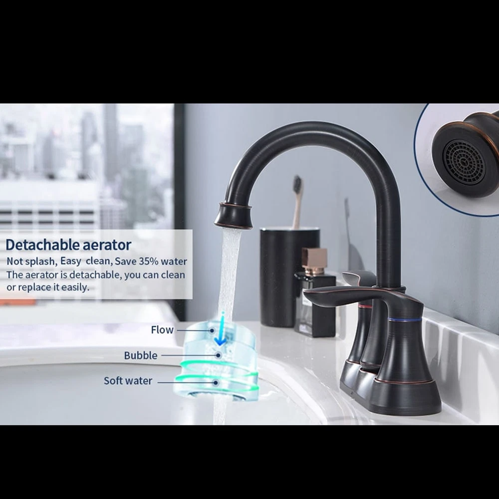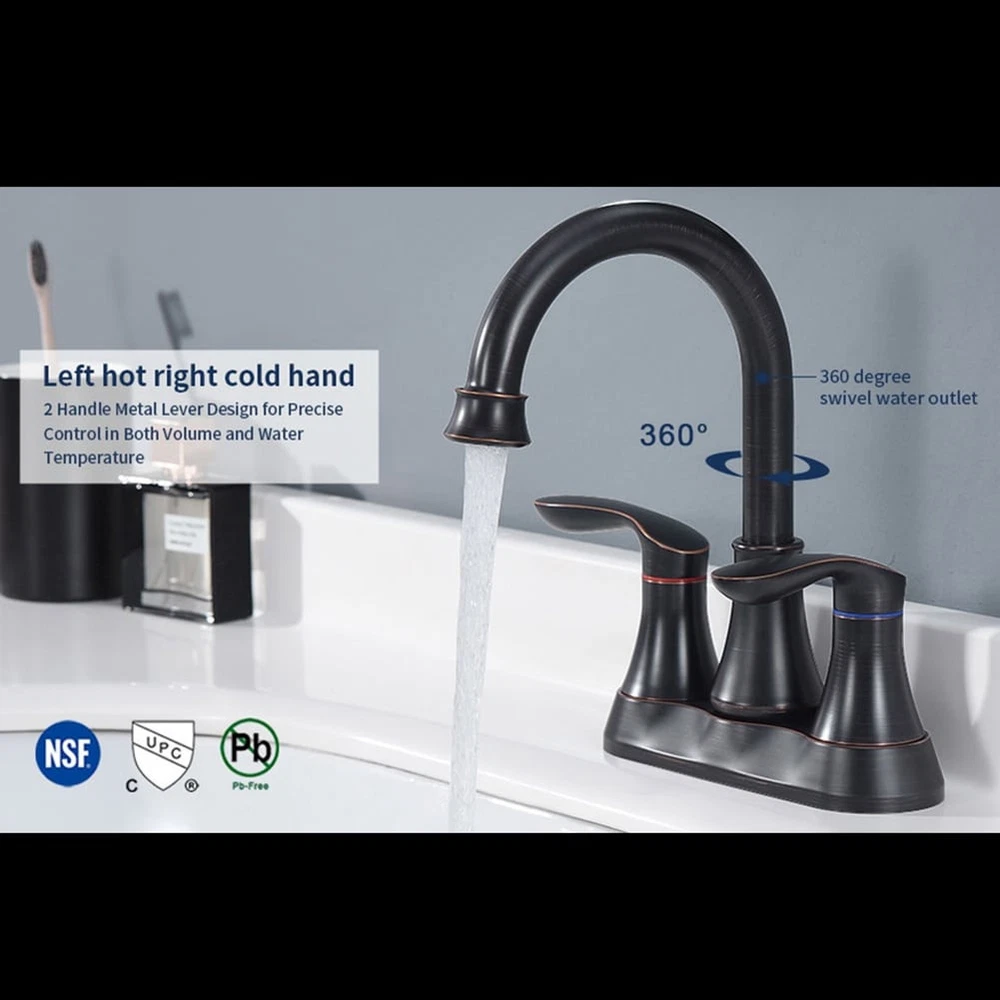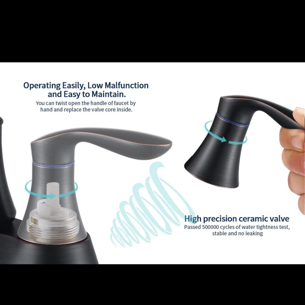 The bathroom faucet improve durability and give you smooth, reliable motion in your bathroom faucet handle for years to come.Make a healthy life for a family,help your children and your parents live in a carefree circumstances.If you like it,don't hesitate to buy it! Features: 1. Two-Handle installation for effortless flow and water temperature control. 2. Solid brass plastic casting body construction ensures durable use. 3. Hot and cold flexible hoses(23.6 inch long) and pop up drain are included. 4. Premium material construction for durable and reliable; Lead-Free and non-toxic, you can use it with confidence.Specifications: Item Weight3 pounds ColorOil-Rubbed Bronze StyleModern FinishOil Rubbed MaterialPlastic casting Number of Handles2 Handle MaterialZinc Plug Free Shipping Over $49.99* Details 2-Handle Bathroom Vanity Sink Faucet with Pop-up Drain and Supply Hose Product Description: The bathroom faucet improve durability and give you smooth, reliable motion in your bathroom faucet handle for years to come.Make a healthy life for a family,help your children and your parents live in a carefree circumstances.If you like it,don't hesitate to buy it! Features: 1. Two-Handle installation for effortless flow and water temperature control. 2. Solid brass plastic casting body construction ensures durable use. 3. Hot and cold flexible hoses(23.6 inch long) and pop up drain are included. 4. Premium material construction for durable and reliable; Lead-Free and non-toxic, you can use it with confidence. Specifications: Item Weight3 pounds ColorOil-Rubbed Bronze StyleModern FinishOil Rubbed MaterialPlastic casting Number of Handles2 Handle MaterialZinc Plug ProfileDeck Mount Package includes: 1*Bathroom Faucet 1*Accessories 1*Instruction manual Note: 1Manual measurement has been used, there may be some reasonable error. 2All the pictures are taken by actual samples, slight chromatic aberration may occur due to lighting or display.