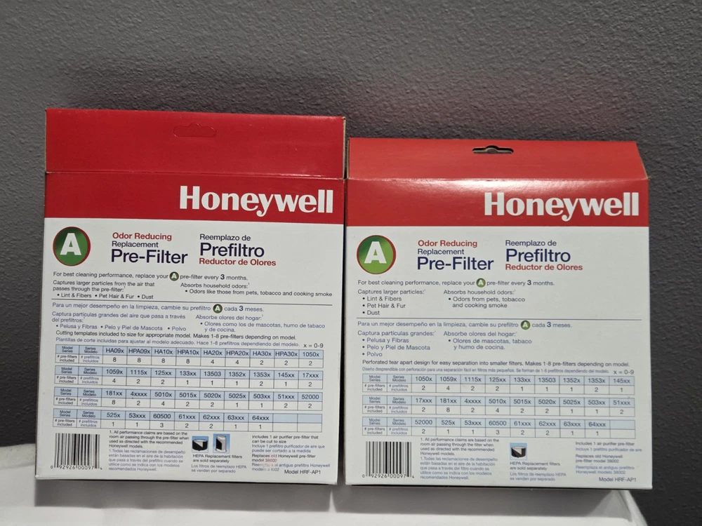 The Honeywell Air Purifier Replacement Pre-Filter HRF-AP1 is designed for odor reduction in large spaces. It is a black sheet pre-filter with carbon filter media that lasts for 3 months. The model number is HRF-AP1, and it is suitable for use in air purifiers. This pre-filter features deodorizing capabilities and is ideal for improving indoor air quality.