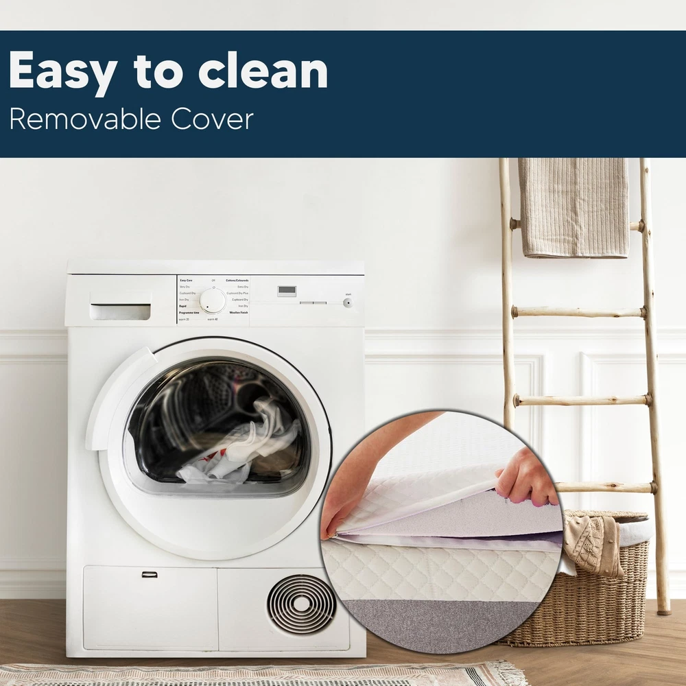 Elevate your sleep to new heights of comfort and protection with our premium mattress topper, thoughtfully designed with an included cover to enhance your nightly rest. Experience the ultimate in relaxation as our mattress topper embraces your body's contours, providing a layer that alleviates pressure points and ensures a tranquil sleep experience. Discover a new level of temperature regulation with our advanced cooling technology, engineered to disperse heat and maintain an optimal sleep temperature throughout the night. Embrace a hygienic sleep environment with the protective shield offered by the included cover and enjoy the convenience of effortless maintenance as the cover is easily removable and machine washable. Revolutionize your sleep setup with easy installation – simply unroll the mattress topper, secure it in place using the accompanying cover, and witness an instant transformation of your sleep haven. Say goodbye to restless nights caused by motion transfer and creaky mattresses as our mattress topper minimizes disruptions and envelops you in quiet . Breathe new life into your existing mattress while augmenting its comfort, delaying the need for a complete . Our mattress topper adapts seamlessly to diverse sleeping positions, ensuring a personalized experience whether you're a side sleeper, back sleeper, or stomach sleeper. And when adventure calls, take your sleep sanctuary on the road by effortlessly rolling up the topper for portable comfort. Experience the convergence of luxury and sustainability, as our mattress topper and cover boast eco-friendly materials that align with your values. Enhanced Comfort: Provides an extra layer of softness and cushioning to your existing mattress, enhancing overall comfort and support. Helps distribute body weight evenly, reducing pressure points and relieving discomfort, especially on sensitive areas like hips and shoulders. Temperature Regulation: Mattress toppers come with breathable materials, aiding in temperature regulation, and preventing overheating during sleep. CertiPUR-US certified foam: Rest easy knowing that the topper's foams are CertiPUR-US certified, meeting stringent standards for durability, performance, and content. Quality you can trust. Quick Installation: Simply unroll and place the topper on your mattress, secure it with the included cover, and you're ready to enjoy enhanced comfort. Affordability: An economical way to improve your sleeping experience without investing in an entirely new mattress. Toppers available in 1” and 2” thickness