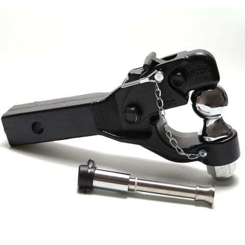 Pintle Hitch with 2-Inch Trailer Ball Stainless Steel Locks Fits 2-Inch Receiver 16,000 lbs 8 Ton 13-Inch Length Pintle Hitch with 2-Inch Trailer Ball Stainless Steel Locks Fits 2-Inch Receiver 16,000 lbs 8 Ton 13-Inch Length Suitable for heavy-duty towing with a 2-inch trailer ball compatible with 2-inch couplers or lunette rings (2.5-3 inch diameter). Features a 2-inch x 2-inch shank designed for easy installation into standard 2-inch hitch receivers. Rated for a towing capacity of up to 16,000 lbs, constructed from solid forged steel for durability. Includes a spring-loaded arm and handle with a shaft lock pin and stainless steel locks for a secure trailer connection. Coated with a weather-resistant powder finish to resist rust, chipping, and UV damage in outdoor conditions.