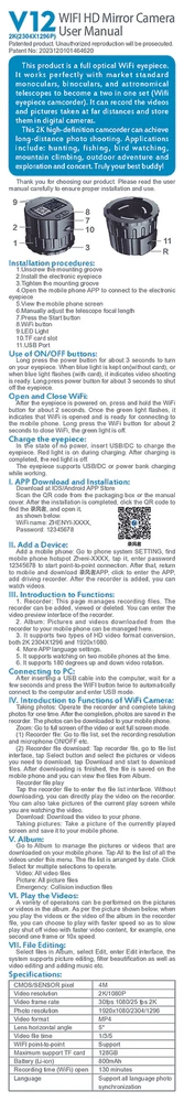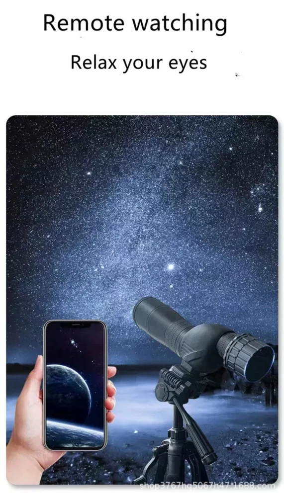 Product Description This product is a full optical WiFi eyepiece, does not include camera stand and telescope .lt works perfectly with market standard monoculars,binoculars, and astronomicaf telescopes tobecome a two in one set,record photos and videos taken by the telescope. It supports two types of HD videoformat conversion, both 2K 2304X1296 and 1920x1080. This 2K high-defnition camcorder canachieve long-distance photo shooting It supports watching on two mobile phones at the time. Product size:65.6*48.5mm Packaging: boxed include: 1pcs WIFI eyepiece host 1pcs usb cable 1pcs instruction manual Payment Returns Contact Us Shipping Feedback 1. We only accept eBay payments. 2. All payments must be made within 3 days after auction won. Item may be returned for refund or replacement within 30 days of the purchase date. Returned merchandise must be unused, in original packaging and include all accessories. Shipping costs are non-refundable. Please do not hesitate to leave us your 5 Star ★★★★★ of DSR positive feedback if you are satisfaction with our products ,delivery or services . If you have Any Questions Or Unsatisfied with your purchase, please Email us firstly to get a better solution before you leave a neutral or negative feedback, we work hard to make sure every customer 100% satisfied and resolve anyproblem for you. Please email us first in the following situations: 1.The item can't work properly. 2.The item broken on the post. 3.You bought or received the wrong items. 4.You have not received your shipment within the period. 5.Before you give us Negative feedback. 6.Before you open a case/return on eBay. All questions will be replied within 24 hours (Except Saturday and Sunday or holidays). Thank you for your kindness! 1. eBay Payments Confirmed Addresses Only. 2. No Delivery to Alaska and Hawaii or PR. 3. No P.O. Box and APO/FPO Delivery. 4. Tracking Number will be provided. 5. Domestic shipping is within the 48 Contiguous States of United States, the delivery time is between 2 and 8 days. Items will be shipped by UPS, USPS or Fedex within 3 business day after receiving full payment. 6. International shipping is from China, the delivery time is between 10 and 30 working days. As a seller , Positive Feedback is very important to us. We try our best to let our customers to be happy. If you have any question about your order, please contact us ,please let us know before you Leave the Negative feedback ,We are willing to do our best to make up for it, Thank you very much ! Payment 1. We only accept eBay payments. 2. All payments must be made within 3 days after auction won. Returns Item may be returned for refund or replacement within 30 days of the purchase date. Returned merchandise must be unused, in original packaging and include all accessories. Shipping costs are non-refundable. Please do not hesitate to leave us your 5 Star ★★★★★ of DSR positive feedback if you are satisfaction with our products ,delivery or services . Contact Us If you have Any Questions Or Unsatisfied with your purchase, please Email us firstly to get a better solution before you leave a neutral or negative feedback, we work hard to make sure every customer 100% satisfied and resolve anyproblem for you. Please email us first in the following situations: 1.The item can't work properly. 2.The item broken on the post. 3.You bought or received the wrong items. 4.You have not received your shipment within the period. 5.Before you give us Negative feedback. 6.Before you open a case/return on eBay. All questions will be replied within 24 hours (Except Saturday and Sunday or holidays). Thank you for your kindness! Shipping 1. eBay Payments Confirmed Addresses Only. 2. No Delivery to Alaska and Hawaii or PR. 3. No P.O. Box and APO/FPO Delivery. 4. Tracking Number will be provided. 5. Domestic shipping is within the 48 Contiguous States of United States, the delivery time is between 2 and 8 days. Items will be shipped by UPS, USPS or Fedex within 3 business day after receiving full payment. 6. International shipping is from China, the delivery time is between 10 and 30 working days. Feedback As a seller , Positive Feedback is very important to us. We try our best to let our customers to be happy. If you have any question about your order, please contact us ,please let us know before you Leave the Negative feedback ,We are willing to do our best to make up for it, Thank you very much ! powered by