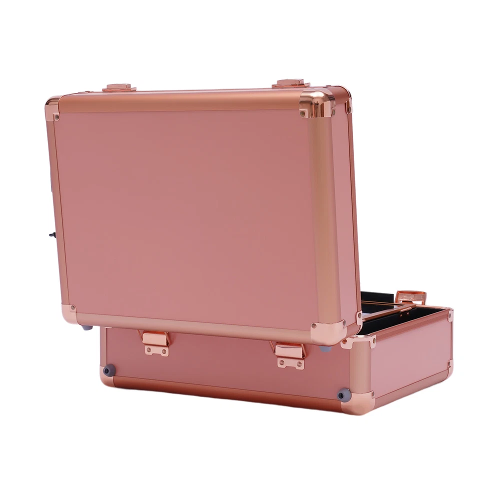 2-Layer Portable Makeup Bag Train Cosmetic Storage Case w/ 2 Lock & LED Mirror Specification Main Material: ABS Color: Rose Gold Plug Type: US Light Source: LED Light Color: Cold White, Warm White and Natural Light Voltage: 110-240v, 50-60Hz Power Cord Length: 1.8m/5.91ft Package Size: 40*21*35cm/15.75*8.27*13.78in Top Cover Mirror Size: 37*28*6.5cm/14.6*11*2.6in Bottom Tray Size: 37*28*9.5cm/14.6*11*3.7in Overall Case Size: 37*28*16cm/14.6*11*6.3in Center Tray Size: 15*22*4cm/5.9*8.7*1.6in Gross Weight: 4kg/8.82lbs Net Weight: 3kg/6.61lbs Package Included 1*Makeup Train Case 1* Power Cord Key Features Large Capacity Zoned Storage : It has two layers . The upper layer consists of 2 separate trays of 5.9*8.7*1.6inch for your usual lipsticks, brushes, blushes, etc. The lower layer is a 14.6*11*3.7in a one-piece tray that provides more space for your nail polish, essential oils, foundation, etc, so you can say goodbye to a cluttered desktop. Elegant Look : It is made in black style with all the components matching that color and keeping in line with the specially made handles for an impressive look. Makeup Assistant: It comes with 4 LED lights designed in the corners of the lid and a top mirror. The LED lights can adjust the light color between cold white, warm white and natural light, and the brightness of the makeup lights can be adjusted by touching the screen, allowing you to apply makeup anytime and anywhere. Security Protection : It comes with 2 locks to protect privacy and security during travel. Therefore, it is also suitable for holding watches, bracelets and some other valuables. Considerate Design:This make-up case comes with a 12V rechargeable jack, an external power supply jack, and a power jack. And the power cord can be used for an external curling iron, mobile phone, and hairdryer power when it is powered up to meet your needs while working. High Quality : It is made of high-quality ABS material, which is sturdy and durable, and the metal reinforced corners have good wear resistance . It can be used for many years. Easy to Clean : ABS stain-proof plastic is easy to clean. If the tray gets dirty with cosmetics, just wipe it with a damp cloth and it will be as good as new. Humanized Design : In addition to the makeup fire compartment itself which is closed, the two separate trays on the upper level also have their separate lids, which can effectively prevent dust and stains on your cosmetics. Ideal Gift : This elegant makeup train case is what every girl needs, so it is a great gift for girls. Portable : It is designed as a mini suitcase with dimensions of 5.9*8.7*1.6in and weighs only 6.61lbs. The curved grip makes it easy to hold and carry on your journey. Details Enhanced Corners : Durable aluminum material for long-term use can hold all your daily cosmetics and tools and keep their shape. Glass Lids : The two separate trays on the upper level feature clear glass lids, making it easy for you to be able to find your cosmetics at a glance. 5.91ft Power Cord : It comes with a 5.91ft power cord, allowing you to have plenty of length at your disposal. Therefore, it is more convenient for you to use it. Application This product is suitable for storing cosmetics and skin care products, as well as jewelry, such as necklaces and earrings. Besides, it also can be used in dark places for makeup. Notes Please allow the slight color difference caused by the shooting light and 1-3cm error due to manual measurement, and make sure you do not mind before you order. Payment Delivery details Terms of sales About us Contact us Payment We accept ebay payment 。 Fees such as import duties, taxes are not included in the item price or shipping costs. These charges are the buyer's responsibility. Delivery details Shipping: 2-9 working days to: USA Terms of sales We maintain high standards of excellence and strive for hundred percent customer satisfaction. Feedback is very important to us. We hope that you contact us immediately before you give neutral or negative feedback, so that we can address your concerns. It is impossible to address issues if we do not know about them! About us Your satis faction is our ultimate goal. We work hard to earn your trust and future business. Our certified technicians have tested each item before shipping. The unit comes with 1 year limited warranty on all manufacturing defects. a) If you receive a defective item, you may return it or ask for a discount. Please contact us within 14 days after you receive the package. b) What you returned must be intact and in its original packaging as re? u. Customer is responsible for shipping costs of the returned item. c) We will cover the cost of shipping back t with the shipping rate indicated in the registration page. We will send you a new unit or refund the full payment you paid. Thank you. Contact us Business Hour Business Hour: Monday To Friday: 8:30 AM to 5:00 PM (Beijing China time) Due to time zones, our reply to your questions may not be immediately. But within above working time, we will reply your email within 24 hours. If it's non-workdays, please kindly be patient and wait till Monday. Please contact us with ebay message. Please feel free to contact us if you have any questions. Monday To Friday: 8:30 AM to 5:00 PM (Beijing China time) Due to time zones, our reply to your questions may not be immediately. But within above working time, we will reply your email within 24 hours. If it's non-workdays, please kindly be patient and wait till Monday. Please contact us with ebay message. Please feel free to contact us if you have any questions.