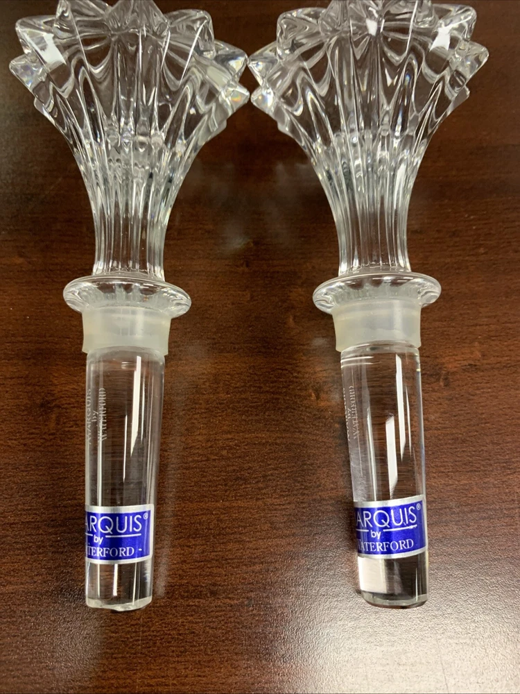 This is a beautiful Marquis by Waterford crystal wine decanter stopper. It is a great gift for any occasion and is perfect for those who enjoy collecting unique and elegant drinkware. The stopper is made of high-quality crystal and features a unique design that is sure to impress your guests. The clear crystal material allows the stopper to shine and sparkle in the light, adding a touch of glamour to your bar or table setting. This wine decanter stopper is a must-have for any Waterford collector or wine enthusiast.