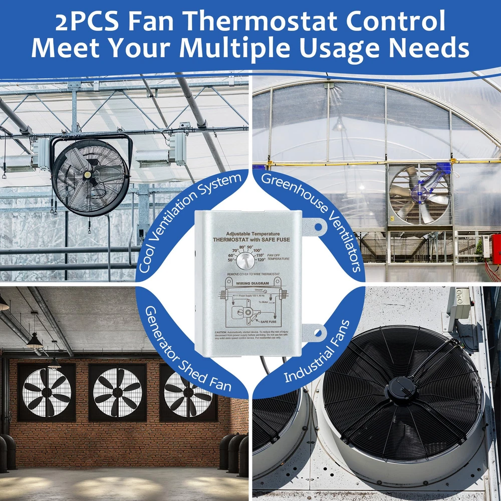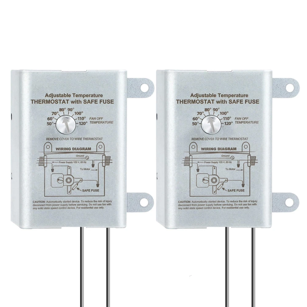 Upgrade Thermostat: the fan off temperature range of this attic fan thermostat controller is 50℉ to 120℉ (10℃ to 48.8℃), you can use it to control power attic ventilators to maximize energy savings and temperature Finger Dial Adjustable Temperature Switch: no need screw driver anymore; This attic fan thermostat control has a finger dial switch with clear arrow indication, making it easier for you to rotate it to adjust the temperature point Wide Application: the thermostat switch can control up to 3 appliances simultaneously within 10 amps of current, you can use this programmable thermostat for greenhouse exhaust fan, attic fan and other exhaust cooling fan system Easy to Install: the home programmable thermostats has a clear wiring diagram right on the box, you can set it up in a few minutes, and no need of any extra professional tool Warm Tips: as the ambient temperature is constantly changing, the temperature of the thermostat by this effect may have some error, the error range is 5-10 degrees Fahrenheit