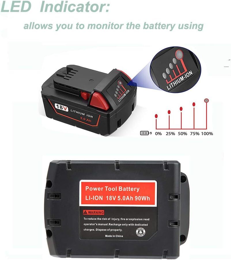 Battery Type:Li-ion | Voltage:18V | Capacity:5000mAh, Upgrade Version: Made of premium lithium battery cells, can be charged freely without memory effect. The Package Include : 2PACKS Volt1799 Replacement milwaukee M18 battery and milwaukee 18v battery charger,100% replacement Milwaukee M18 battery 48-11-1811, 48-11-1815, 48-11-1820, 48-11-1822, 48-11-1828 , 48-11-1840, 48-11-1841, 48-11-1850, 48-11-1852,Replacement battery charger for all Milwaukee 12V-18V M12 14 18 lithium-ion batteries. Big Power Design : 100% all-in-one charging solution replacement milwaukee M18 18V 5000mAh lithium battery . 2PACKS 5.0Ah 18V Lithium Battery and Charger for Milwaukee M18 Battery 48-11-1820 Cordless Power Tools Batteries, Capacity Output 5.0Ah Battery Type:Li-ion | Voltage:18V | Capacity:5000mAh, Upgrade Version: Made of premium lithium battery cells, can be charged freely without memory effect. The Package Include : 2PACKS Volt1799 Replacement milwaukee M18 battery and milwaukee 18v battery charger,100% replacement Milwaukee M18 battery 48-11-1811, 48-11-1815, 48-11-1820, 48-11-1822, 48-11-1828 , 48-11-1840, 48-11-1841, 48-11-1850, 48-11-1852,Replacement battery charger for all Milwaukee 12V-18V M12 14 18 lithium-ion batteries. Big Power Design : 100% all-in-one charging solution replacement milwaukee M18 18V 5000mAh lithium battery . Safe, Stable & Reliable:Built-in protection against potential damage caused by overcharging, Delivers fade free power in extreme jobsite conditions,Integrated battery and charger chips prevent overcharging and extend battery life. Provides durable performance and durability. Buy with confidence: 30 days money back and 18 months quanlity service, About the usage and maintenance of battery, please feel free to contact us, we provide 7*24 hours of professional online answer, we will accept all opinions with humility and satisfied you. Item name: Replacement milwaukee m18 battery Battery Capacity: 5000mAh Voltage: 18-Volt Battery Type: Lithium ion Color: Black&Red Condition: New 2 Pack* Battery Compatible with18V MILWAUKEE M18 Battery and charger For milwaukee m18 battery: 48-11-1811, 48-11-1815, 48-11-1820, 48-11-1822, 48-11-1828, 48-11-1840, 48-11-1841, 48-11-1850, 48-11-1852, 48-59-181, 48-59-1850,982-2, 4932352071, 4932430063, C18B, Li18, M18, M18B, M18B2, M18B4, M18BX, XC. Tools: 2646-22CT,2643-21CT,2641-21CT,2646-21CT,2646-20,2642-21CT,2641-20, 2729-22,2629-22,2729-20,2729-21,2629-20,2706-22,2705-20,2705-22,2704-20, 2787-22,2702-20,2701-20,2656-22CT,2707-22,2708-22,2607-22,2603-22CT,2601-21, 2615-20,2602-22DC,2606-20,2604-22CT,2706-20,2704-22,2788-22,2702-22CT,2701-22CT, 2707-20,2708-20,2607-22CT,2607-20,2603-20,2603-22,2615-21CT,2615-21,2606-22CT,2604-22,2604-20. Li-ion | Voltage:18V | Capacity:5000mAh, Upgrade Version: Made of premium lithium battery cells, can be charged freely without memory effect. 100% all-in-one charging solution replacement milwaukee M18 18V 5000mAh lithium battery . This replace battery for Milwaukee M18 battery designed with four level fuel gauges LED displays remaining runtime for less downtime on the job, lets you know how much charge you have left. 100% compatible with original Milwaukee 18V Battery Charger 48-59-1812 To be on the safe side please do not charge the battery for a long time or install the battery in the device without using it. Please do not store the battery in a place that is too humid or too hot. This ItemVolt1799 2PACKS 5.0Ah 18V Lithium Battery and Charger for Milwaukee M18 Battery 48-11-1820 Cordless Power Tools Batteries, Capacity Output 5.0AhRecommendationsMilwaukee M18 18-Volt Lithium-Ion Starter Kit with One 5.0 Ah and One 2.0 Ah Battery and ChargerM18 5.0 BATTERY 2PK STARTER KITMilwaukee 48-11-1852 M18 REDLITHIUM XC 5 Ah Lithium-Ion Extended Capacity Battery (2-Pack)Milwaukee 48-11-1850 M18 Redlithium 5.0Ah Bat PackMilwaukeeTool 48-11-1862 M18 Lithium-Ion High Output 6.0Ah Battery Pack (2-Pack) Add to cart Add to cart Add to cart Add to cart Add to cart Add to cart Price$91.99$91.99$169.90$169.90$133.00$133.00-8%$109.34$109.34 Typical:$118.99-9%$57.99$57.99 Typical:$63.89-13%$173.72$173.72 List:$199.00DeliveryGet it as soon as Friday, Feb 28 Get it as soon as Tuesday, Mar 4 Get it as soon as Friday, Feb 28 Get it as soon as Friday, Feb 28 Get it Mar 4 - 6 Get it as soon as Friday, Feb 28 Customer Ratings4.24.2 out of 5 stars1684.54.5 out of 5 stars334.74.7 out of 5 stars2,1314.74.7 out of 5 stars2,2794.84.8 out of 5 stars9,0414.74.7 out of 5 stars1,605Sold By Valora Tawnie AB Promise Jeff’s garage Roaring Sellers Vivian Store LLC JBToolscapacity 5000 milliamp hours 5 amp hours 5 amp hours — — 6 amp hoursbattery quantity — 2 lithium ion 2 lithium ion 2 lithium ion, 2 9v 1 lithium metal, 1 lithium ion, 1 unknown, 1 nonstandard battery 2 lithium ionvoltage 18 volts of direct current 18 volts 18 volts 18 volts 18 volts 18 voltsreusability Rechargeable Rechargeable Rechargeable Single Use Rechargeable Rechargeable4.2 out of 5 stars Volt1799 2PACKS 5.0Ah 18V Lithium Battery and Charger for Milwaukee M18 Battery 48-11-1820 Cordless Power Tools Batteries, Capacity Output 5.0Ah Share: Found a lower price? Let us know. Although we can't match every price reported, we'll use your feedback to ensure that our prices remain competitive. Fields with an asterisk * are required ** 01 02 03 04 05 06 07 08 09 10 11 12 01 02 03 04 05 06 07 08 09 10 11 12 13 14 15 16 17 18 19 20 21 22 23 24 25 26 27 28 29 30 31 *Enter the store name where you found this product* Please select province Please select province * 01 02 03 04 05 06 07 08 09 10 11 12 01 02 03 04 05 06 07 08 09 10 11 12 13 14 15 16 17 18 19 20 21 22 23 24 25 26 27 28 29 30 31 Submit FeedbackPage 11Page 1 of 1 Product Details: Milwaukee M18 Replacement Battery 5.0Ah Battery Type: Big Power Design : Multifunctional Design: Replacement Milwaukee Battery Charger: How to protect the battery? Warranty & Support Feedback Videos for this product Unboxing and items in the 48
