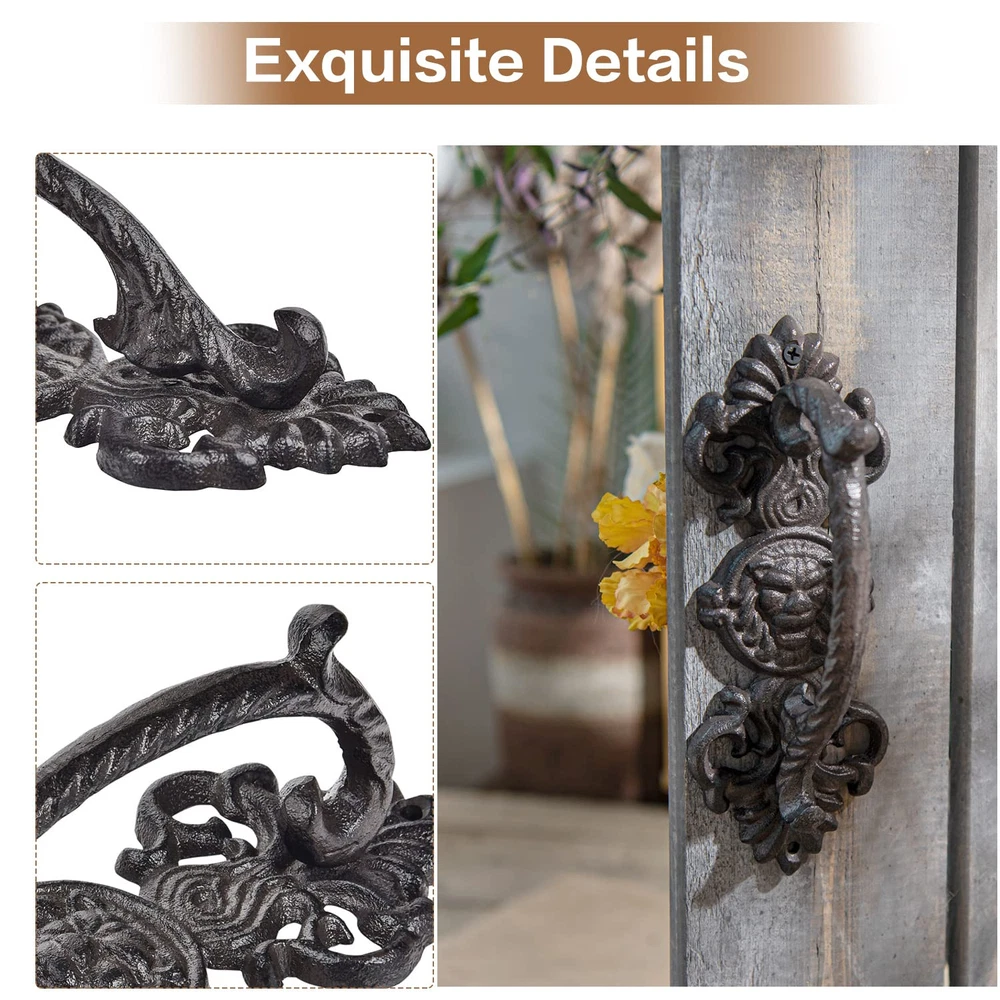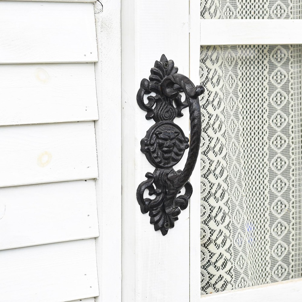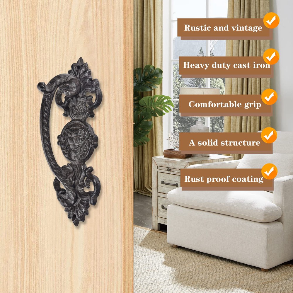 Material: These door handles are made from heavy duty cast iron, finished with antique black brown color coated, solid construction. Rustic & Vintage Style: Rustic drawer pulls with a smooth-ish but with an aged hand-made iron look. They are the opposite of modern and should look nice in any old or rustic or industrial type of décor. Exquisite Details: Handles are well made, they have been ground, no sharp edges and are comfortable to grasp, very heavy and sturdy. It is very easy to apply, and definitely give your door some extra panache. Widely Application: Solid metal barn door handles are perfect for barn doors, garden gates, garage doors, wooden doors, fence gates, french doors, shed doors, closet door, sliding doors etc. Pull door handle can be used in interior and exterior. Easy to Install (Note:Mounting screws are not included); Package Includes - 2 * Door Pull Handles; Size:22L*8.5W*7H (CM) / 8.7H*3.4W*2.8H (INCH)