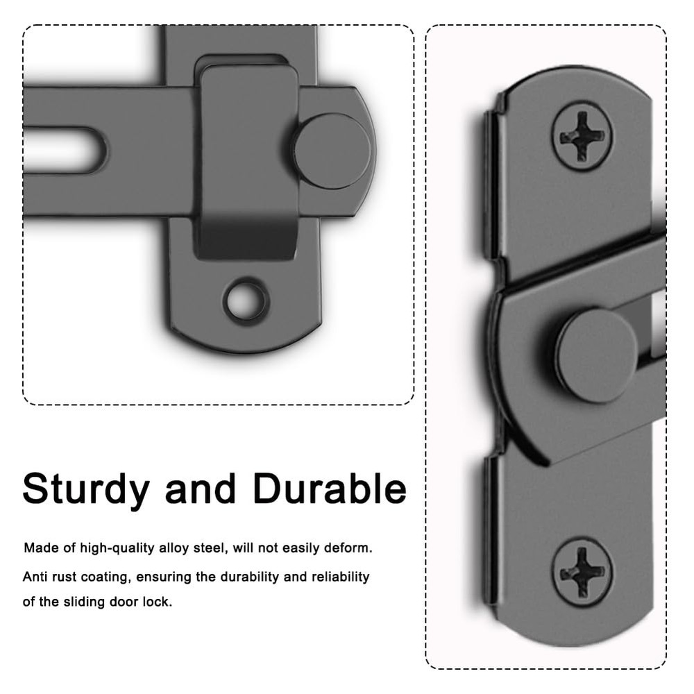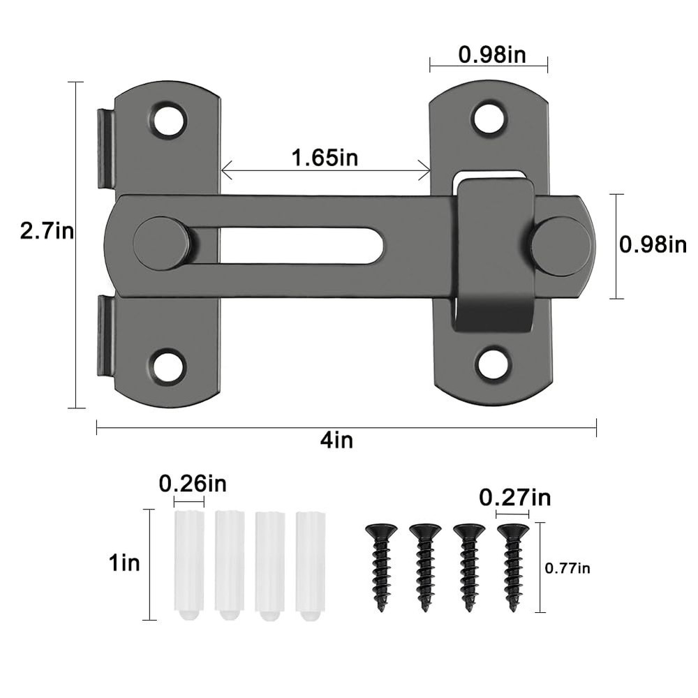 VEAPIZ brand is committed to providing you with the highest quality products and services to make your shopping experience the best it can be. we want to bring convenience and fun to you and your family. Product Advantages: ● Classic hook eye lock that is easy to operate and can be quickly locked and unlocked. ● Made of high-quality alloy steel, covered with a rust resistant coating on the surface, which can resist daily corrosion, and discoloration. ● Not limited by space,can also rotate 180 degrees,both sides can be installed. ● Attention to the distance between the rotating cards to ensure that the door latch can work proper. ● The door lock and latch are lightweight, sturdy, and durable, and will not easily deform. ● not only do you not have to worry about children and pets entering, but also protect your privacy. If you like it, don't hesitate to act! Material: High-quality carbon steel Lifetime Guarantee: VEAPIZ products are subject to strict quality checks and provide a lifetime guarantee on our products. If there is any problem with the product during the warranty period, we will give you a full refund. Package Includes: 2PCS Barn door lock(black) 8PCS Installing screws(black) Easy to Operate: The barn door lock is a classic hook and eye lock, easy to operate and can be quickly locked and unlocked, and difficult to automatically unlock. Compact and exquisite, it can firmly grasp your doors and windows, not only do you not have to worry about children and pets entering, but also protect your privacy. Sturdy and Durable: The barn door latch is made of high-quality alloy steel, sturdy and durable, and will not easily deform. The surface is covered with anti rust coating, which can resist daily corrosion, ensuring the durability and reliability of the sliding door lock. No Limited by Space: The barn door lock is not limited by space and can firmly lock the door. The barn door latch can also rotate 180 degrees and can be installed on both the left and right sides of the doors and windows. Easy to Install: This gate latch is easy to install, each equipped with 4 mounting screws. Once the screws are fixed, the installation is complete. However, pay attention to the distance between the two accessories to ensure that the barn door lock can work properly. Wide Application: The barn door latch is lightweight, but sturdy and practical, making it an ideal choice for most farm gates, small pet cages, sheds, cabins, windows, cabinets, garages, barn doors, and more. Add a simple protection to your doors and windows, and bring convenience to your life.