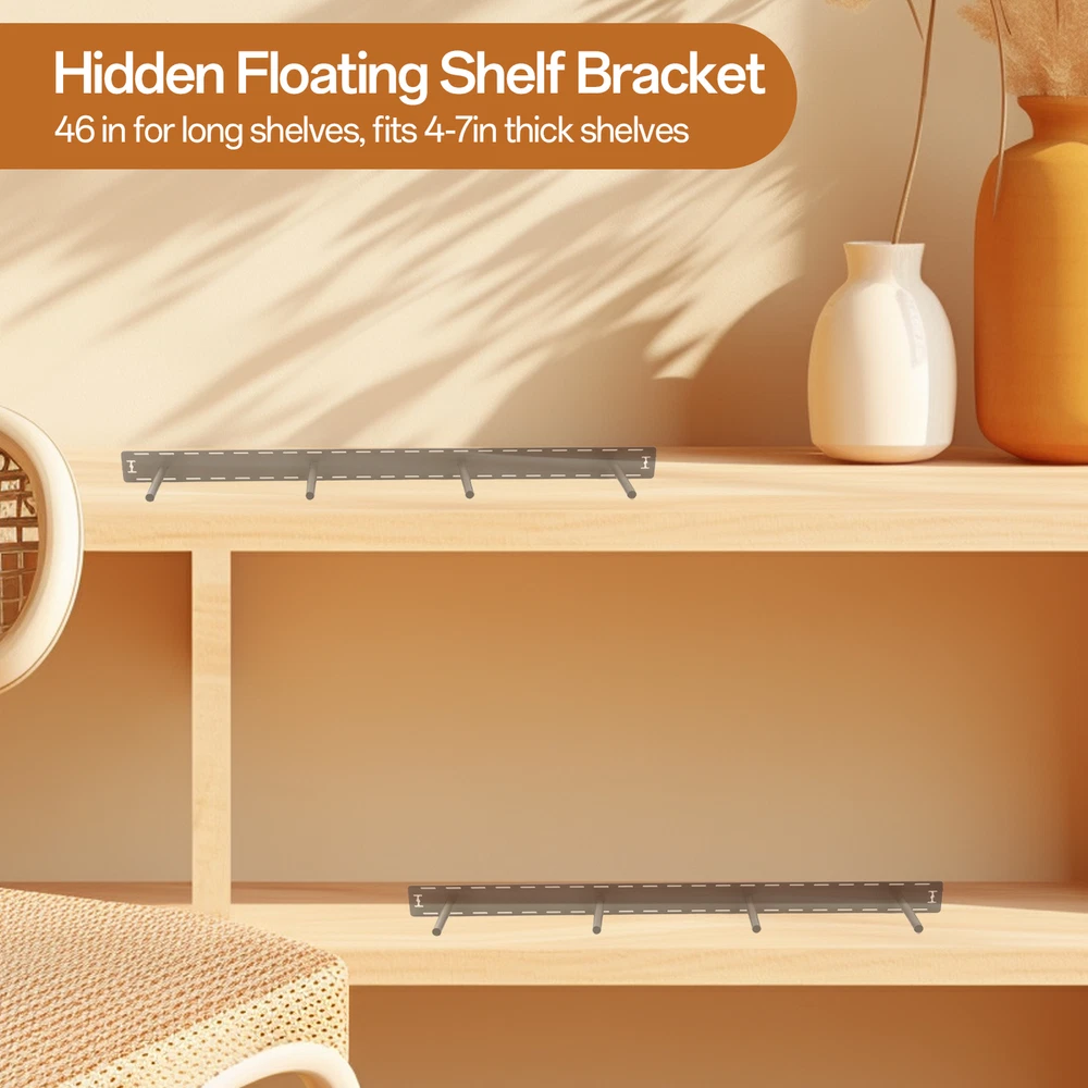 These heavy-duty floating shelf brackets are a game-changer! The solid steel construction ensures sturdy support while keeping shelves sleek and invisible. Perfect for books, decor, or heavy items—no sagging or wobbling. The clean, minimalist look elevates any room, and installation is a breeze. Much stronger than flimsy alternatives, they’re worth every penny for a polished, clutter-free space. Highly recommend!