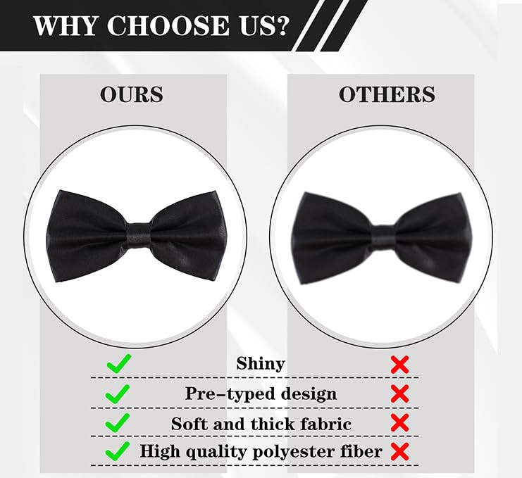 Return Policy Fast Delivery Trusted seller 2PCS Bow Ties for Men, Adjustable Black Bow Tie, Classic Bow Tie for Weddings, Banquets, Bands, Graduations, Christmas, Celebrations and Any Other Formal Occasions Product Description Shipping Returns Payment Shipping Shipping is FREE to all addresses other than APO/PO boxes in the lower 48 states. All our stock ships from US-based warehouses. Shipped via USPS or UPS (depending on location and package weight) Unless stated otherwise, all orders will ship within 24-72 hours of your payment being processed. Check our feedback to see the great reviews of FAST shipping we offer. Returns Seller does not accept returns Payment We currently accept payment via eBay managed payments only. Once payment is cleared, we will dispatch your shipment within 1-3 business days. Please refer to the "Shipping" tab for more information regarding shipping speed to your destination.
