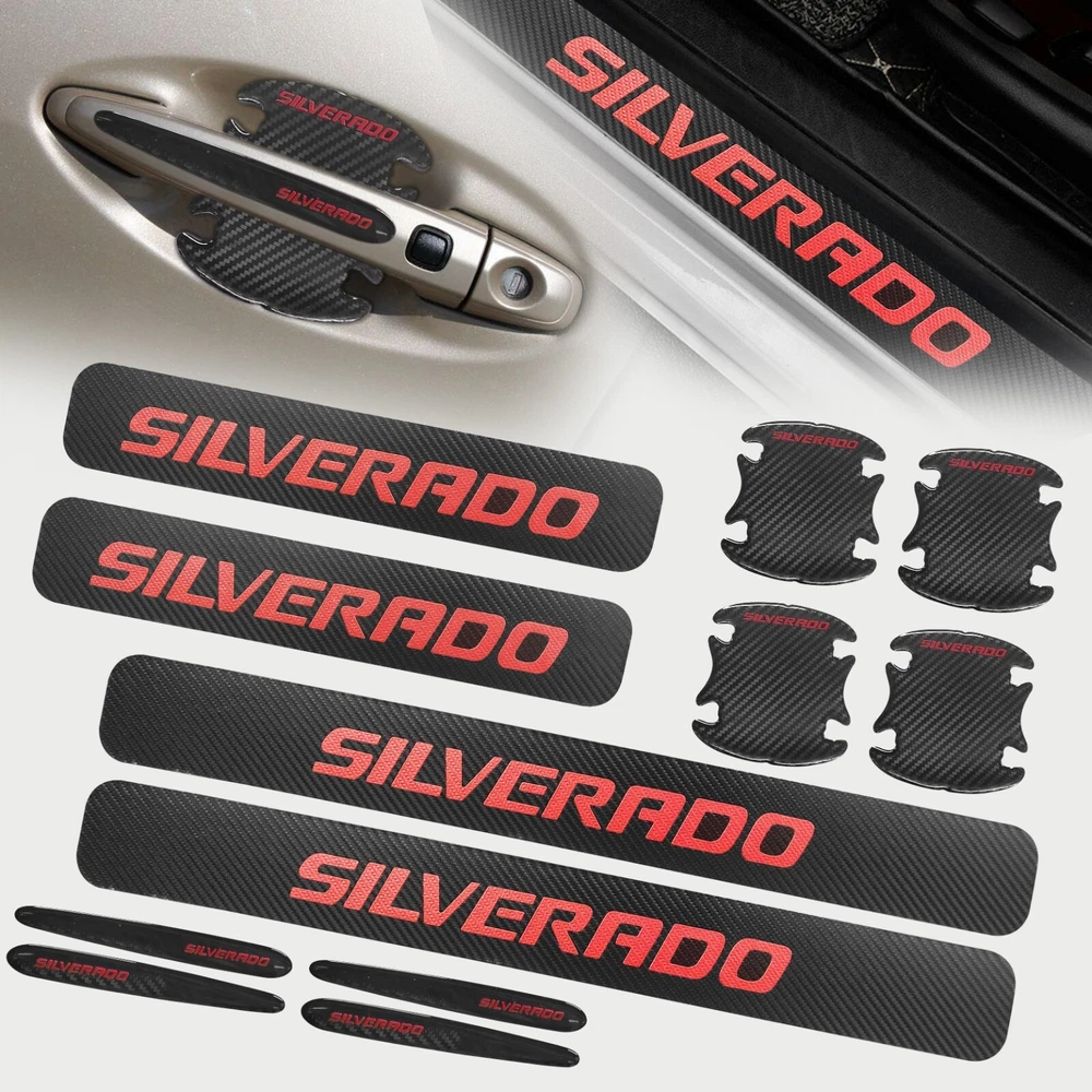Door Sill Scuff Cover Stickers Made of high quality Carbon Fiber Textured Faux Leather, Anti Scratch and abrasion resistant, durable and effective in protecting car door sills. Easy Installation: P lease wipe the car door sill clean before installing, to ensure that there is no oil and dust first, then remove the protective paper on the back of the sticker, gently stick on the door sill above to ensure that no air bubbles are generated. Simple Maintenance: When the car door sill protector reflective sticker is stained with dirt or oil, simply wipe it with a damp rag and it will look like new with a gentle wipe. Door Cup Stickers & Door Handle Stickers Material: Carbon Fiber Texture Vinyl Stickers + Epoxy Resin Self adhesive , won’t fall of easily, will keep your door cups looking like new, without changing the appearance in any weather. No more scratches to the door handle cups Easy to Install: Clean car door handle cup and let it dry, then tear off the protector film from adhesive backing, stick film onto the cup and adjust the perfect position. Package Included : 4PCS Door Sill Scuff Cover Stickers (2 Front + 2 Rear) 4PCS Door Cup Stickers 4PCS Door Handle Stickers