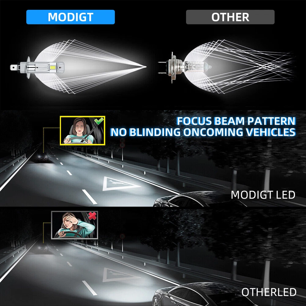 Specification: Type: Light Bulb LED Chips: CSP 3055 Chips Color Temperature: 6000K Color: White Suitable For: Headlight, Low Beam, High Beam, Fog Light Lumens: 20000LM/a pair bulb Voltage: DC 9V - 32V ( Fit 12V 24V Vehicle ) Wattage: 70W Number of Bulbs: 2 Waterproof: IP67 Placement on Vehicle: Front, Left, Right Fitment Type: Direct Replacement OE/OEM Part Number: H1 Bulb Life Hours: Up to 50,000 Hours Features1: 360° Adjustable Features2: Copper plate heat dissipation+aluminum shell heat dissipation Features3: CANbus compatible Packaging includes: 1shengmei Best choice of motor parts 2PCS H1 LED Headlight Bulbs Kit 25W 20000LM Hi/Lo Beam CANbus Bright White Specification: Type: Light Bulb LED Chips: CSP 3055 Chips Color Temperature: 6000K Color: White Suitable For: Headlight, Low Beam, High Beam, Fog Light Lumens: 20000LM/a pair bulb Voltage: DC 9V - 32V ( Fit 12V 24V Vehicle ) Wattage: 70W Number of Bulbs: 2 Waterproof: IP67 Placement on Vehicle: Front, Left, Right Fitment Type: Direct Replacement OE/OEM Part Number: H1 Bulb Life Hours: Up to 50,000 Hours Features1: 360° Adjustable Features2: Copper plate heat dissipation+aluminum shell heat dissipation Features3: CANbus compatible Packaging includes: 2x H1 LED Headlight Features: 1. Good light type , Low power consumption and super bright lighting,the position of the light-emitting point is close to the original car halogen lamp 2. No delay to light up , Faster on/off response time, low power consumption and high lighting,Good Quality And Durable,Easy to Install,Good Feel 3.Lifespan: Up to 50,000 hours working hours ,Adopt imported chips emit 360 degree light can light up every corner, stable quality, long service life 4.The model is as the same as factory light, no need to change car wire rute,just Plug and Play , NO modification required A direct replacement part that easy to install 5.With High-purity brightness , strong penetrability and superior stability,Energy saving, environmental protection, through strict test, Use safer driving in the car,highly recommended. 6.Efficient Cooling System: Copper plate heat dissipation+aluminum shell heat dissipation .LC plus comes with a copper base board, cold pressed aluminum heat sink . Better solve the dimming or over heated of led bulbs. 7. CAN-bus ready design: Making led bulbs error free for 99% of vehicles’ system, upgraded driver with built-in intelligent IC and temperature control ensures lamps working at the best status without error or radio interference. 8. CSP Chips, Brightness Improved , MGT H1 LED beam bulb is designed with CSP 3055 Chips , 6000K cool white, about 2 times brighter than stock halogen bulbs allowing you to see more clearly and farther on the road, improve visibility at night. Advantages of Copper Substrate: 1. The copper substrate itself has strong thermal conductivity and good heat dissipation. 2. structure: Contact the lamp beads with zero thermal resistance, reduce the weak light of the lamp beads, and maximize the lifespan of the lamp beads. 3. High density: smaller volume at the same power. 4. Paired with a single high-power lamp bead, especially CSP packaging, the lamp can achieve better results. Install Caution: 1. As a safety precaution, make sure that the car has had time to cool down properly before starting the installation process. 2.Put the vehicle into park or make sure it is securely in gear. 3.Make sure to have the ignition turned off and the keys removed. 4. Be careful to avoid burns, especially when turning on or off the vehicles lighting. 5. Be careful to avoid crushing or cutting the bulbs. Also make sure to not touch the bulbs with your fingers, as this will cause blotting. 6. Fully examine the connection of the contact points, ports and the wires as faulty connections can cause lighting problems. 7. Make certain that the end of the bulb does not come in contact with the interior light shield of the headlight when adjusting the bulb. Notes: 1.Compatible mentioned can not show up all Car model. Please check the Correct bulb size of your vechicle. it will work and fit.Thank you! 2.Professional installation is highly recommended if you have any difficult in installation. Item Specifics Brand MGT Lighting Technology LED Suitable For Headlight, Low Beam, High Beam, Fog Light Bulb Fitment Code H1 Number of Bulbs 2 Light Color White Type Light Bulb Operating Temperature -40-80 degree Celsius Manufacturer Part Number H1 OE/OEM Part Number H1 Color Temperature 6000K Wattage 70W Voltage DC 9V - 32V ( Fit 12V 24V Vehicle ) Lumens 20000LM/a pair bulb Waterproof IP67 Headlight Bulb Type H1 Sealed Housing Dustproof and Waterproof Lighting Type Specialty Head Light Bulb Manufacturer Warranty 2 Years Bulb Life Hours Up to 50,000 Hours Interchange Part Number H1 Model H1 2-Sides Super Bright LED Bulbs Conversion Kit Superseded Part Number Headlight High Beam Low Beam LED Conversion Kit Fitment Type Direct Replacement Features 1 LED Light Features 2 CSP Chips, Brightness Improved Features 3 Perfect Beam, No Dark Spots Features 4 360° Adjustable Features 5 Copper plate heat dissipation,aluminum shell heat dissipation Features 6 CANbus Compatible Package Includes 2X H1 LED Headlight Payment 1. It will be much appreciated that you finish your payment asap or it will make UPI (unpaid item case) on your account leading to be suspended or restricted by eBay when those UPI cases carry over to certain amount. 2. Any problems please contact us for more details. Shipping 1. All items will be shipped to buyer's ebay address. 2. All items will be shipped within 24-48 working hours upon receipt of payment, and multiple items will be combined shipping. 3. In most cases, delivery takes around 3-5 business days, it's highly depended on the efficiency of the shpping carrier. If your item doesn't arrive on time, please contact us immediately for further assistance. Please note there is no local pickup service available. Returns If you are not 100% satisfied with your purc