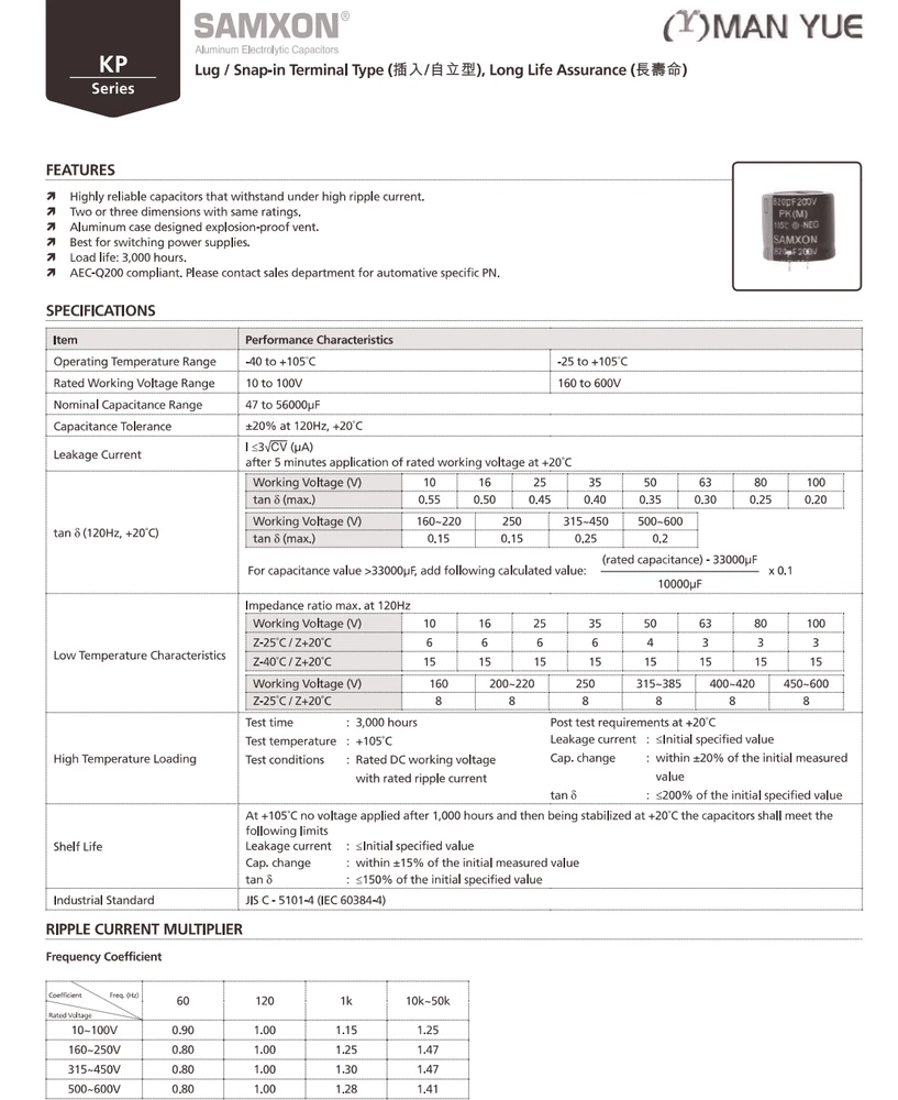 Store Seller Profile Feedbacks Contact Capacitors Aluminum Electrolytic Capacitors Aluminum Electrolytic Capacitors - Snap In close EKP277M2EN30SW SAMXON 270uF 250V 22x30mm Aluminum Electrolytic Snap-In Capacitor 3000h 105C High Ripple Ready to Ship Ask a Question 30-Day Return Description Specifications Shipping & Return Policy Disclaimer Pack of 2PCS - EKP277M2EN30SW SAMXON 270uF 250V 22x30mm Aluminum Electrolytic Snap-In Capacitor 3000h 105C High Ripple Specification Shipping Policy Our go-to options for small to medium items are USPS Ground Advantage and USPS Priority Mail, known for their reliable tracking and peace of mind. Smaller items might qualify for USPS First Class Mail. Contact us to discuss this option before purchasing. Note: This method is less recommended due to the potential for delays. Return Policy We offer a 30-day return policy, no questions asked. If you choose to provide a reason for the return, it will assist us in improving and fix the issue. Packaging Our items are packaged according to their needs—some in ESD bags with pins secured in protective sponge, others in foam-enclosed boxes. For larger quantities, options include broken tubes for transistors or cartons. We welcome your suggestions for packaging preferences. Sofitrek Product Disclaimer Nature of Goods: All products offered by Sofitrek are surplus items. These products may originate from older batches, series, or have earlier date codes compared to those currently provided by the original manufacturers or their authorized dealers. Non-Affiliation: Sofitrek operates independently and is not an authorized distributor, nor is it affiliated or associated with the manufacturers of the products sold. Consequently, Sofitrek does not represent the manufacturers of these products in any capacity. Exclusion of Manufacturer's Warranty: Since Sofitrek is not an authorized distributor, the original manufacturer's warranties are explicitly not applicable to the products sold. This includes any implied warranties of merchantability or fitness for a particular purpose. Firmware and Software: Some products may include pre-installed firmware or software. However, Sofitrek does not guarantee the presence, compatibility, or the revision level of such firmware or software as suitable for your specific application. Furthermore, Sofitrek expressly disclaims any representation regarding your right or ability to download, obtain, or install any firmware or software for the products from any source, including the original manufacturers or their distributors. Limitation of Liability: Sofitrek shall not be held liable for any form of damages—direct, indirect, incidental, consequential, or otherwise—arising from the use, misuse, or inability to use any product sold. This includes, but is not limited to, damages for loss of profits, goodwill, use, data, or other intangible losses. The buyer assumes all responsibility for the safe and lawful use of the product and agrees to indemnify and hold harmless Sofitrek against any claims, liabilities, or expenses related to the product's use. Compliance and Responsibility: The buyer is solely responsible for adhering to all terms of any End-User License Agreement or similar documentation related to the products, particularly concerning the obtaining, installation, and use of firmware or software. Severability: If any provision of this disclaimer is found to be invalid or unenforceable, the remaining provisions shall continue to be in full force and effect. By purchasing from Sofitrek, the buyer acknowledges having read, understood, and agreed to this disclaimer in its entirety. Links eBay Shop Feedbacks Contact Us © Sofitrek