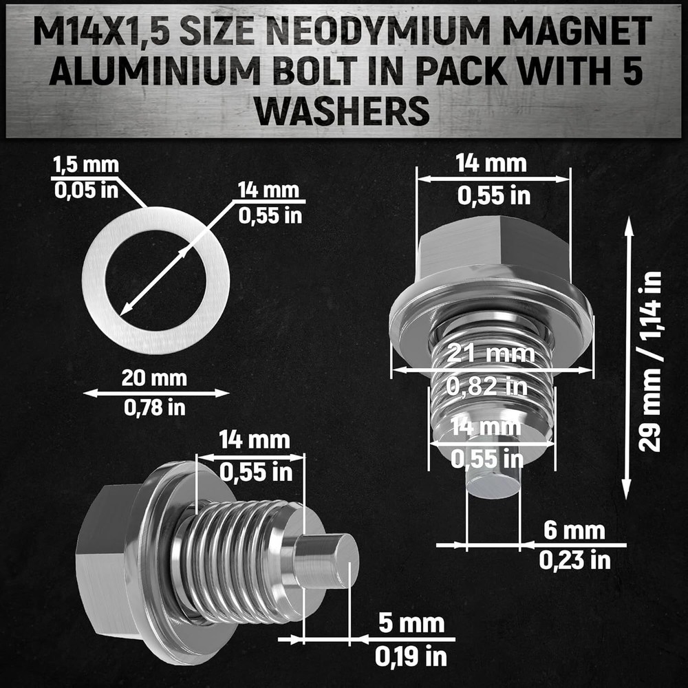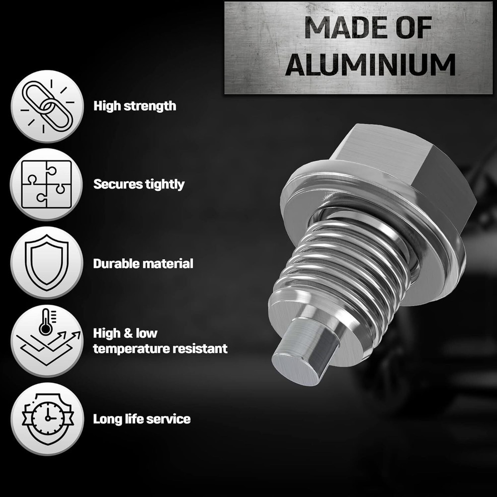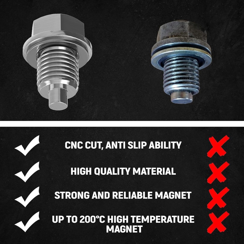 2PCS M14x1.5 Universal Car Engine Magnetic Oil Drain Plug Screw Nut Bolt Sumps 🔧 2-Pack M14x1.5 Magnetic Oil Drain Plug – Universal Fit (Honda/Acura/Mazda/Mitsubishi/Suzuki) 🔧 【Aluminum | Silver | Strong Magnet】Traps Metal Shavings | Reduces Engine Wear | Reusable | 90-Day Warranty 1. Core Features 🔹 Universal Compatibility Vehicle Fit : Works with most Honda, Acura, Mazda, Mitsubishi, and Suzuki models – designed for M14x1.5 thread size. Critical Fit Check : Confirm your original oil drain plug’s thread size is M14x1.5 before purchase – incompatible with non-matching thread sizes. 🔧 Engine Protection & Durable Design Strong Magnetic Function : Incredibly powerful magnet traps metallic particles, metal shavings, and nanoparticles that bypass standard oil filters. Reduces Engine Wear : Prevents harmful debris from circulating in engine oil, protecting internal components and extending engine lifespan. Aluminum Construction : Lightweight yet durable, with a silver finish that resists corrosion and stands up to regular use. 🌟 Easy Installation & Reusability Plug-and-Play Setup : Installs like a standard oil drain plug – no modifications needed, just replace your original plug with this magnetic version. Reusable Design : When changing oil, simply clean the magnetic end of trapped debris and reuse the plug (no need for frequent replacements). 2-Pack Value : Includes two plugs for spare use or multiple vehicles, ensuring long-term engine protection. 2. Technical Specifications Parameter Category Detailed Specifications Condition 100% Brand New Product Type Magnetic Oil Drain Plug Screw Nut (Sump Bolt) Material Aluminum Color Silver Thread Size M14x1.5 Key Features Strong magnet; traps metal debris; reduces engine wear; lightweight; reusable; easy installation Compatible Brands Most Honda, Acura, Mazda, Mitsubishi, Suzuki models Warranty 90-Day Warranty Shipping Note Ships from CA/NJ; confirm original plug thread size before purchase 3. Package Included 2 × M14x1.5 Magnetic Oil Drain Plugs (Aluminum, Silver) 4. Usage & After-Sales Tips Installation Guidelines (DIY-Friendly) Prep : Ensure the engine is cool; drain old oil from the sump (follow standard oil change procedures). Replace Plug : Remove the original oil drain plug, wipe the sump opening clean, and thread the magnetic plug into place by hand. Tighten Securely : Use a wrench to tighten the plug to the manufacturer’s recommended torque (avoid over-tightening to prevent stripping). Maintain : During each oil change, clean the magnetic end of trapped debris with a cloth, then reinstall the plug. After-Sales Support Fitment Issues : If the plug doesn’t thread into your sump, confirm original plug thread size – contact the seller for guidance. Defects : If the magnet is weak or the plug arrives damaged, reach out immediately for a warranty replacement. Feedback First : Contact the seller before neutral/negative feedback – all issues (shipping, quality, fit) will be resolved promptly. This magnetic oil drain plug set is a simple, effective upgrade for your vehicle! It protects your engine from harmful debris and saves you money on frequent plug replacements. 🚗🔧