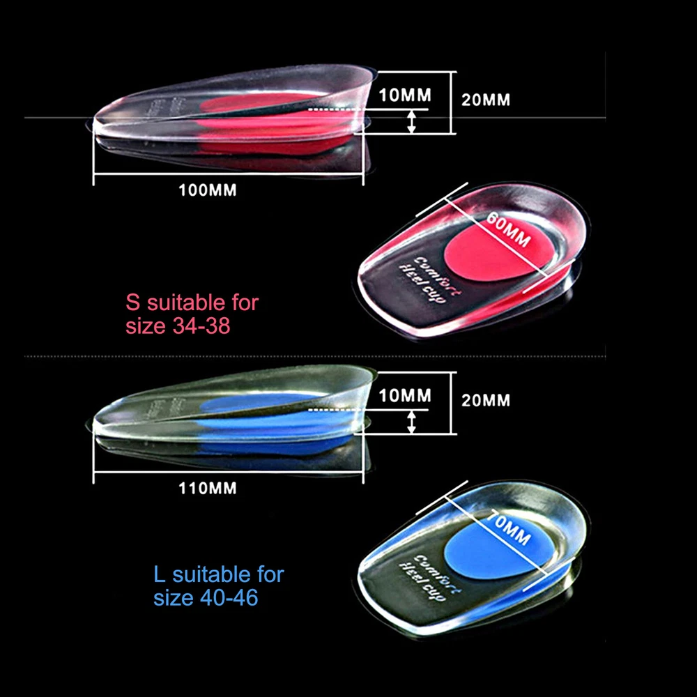 Features: Made of high-quality soft silicone material, , shock-absorbing and wear resistant. It's soft enough, comfortable to wear, helping reduce the shock and pressure to your feet when walking or running. Help relieve your heel pain & discomfort from plantar fasciitis, bone spurs, heel spurs, etc. It can be used in all types of shoes, including athletic shoes, sport shoes, dress shoes and boots, etc. Perfect choice for those people who are standing all day, reducing pain, fatigue and swelling. Specifications: Material: Silicone Color: Blue, Red (Optional) Item Size: Small, Large (Optional) Package Size: 100 * 100 * 30mm Package Weight: 50g Package List: W22135BL-L 1 * Pair of Insoles