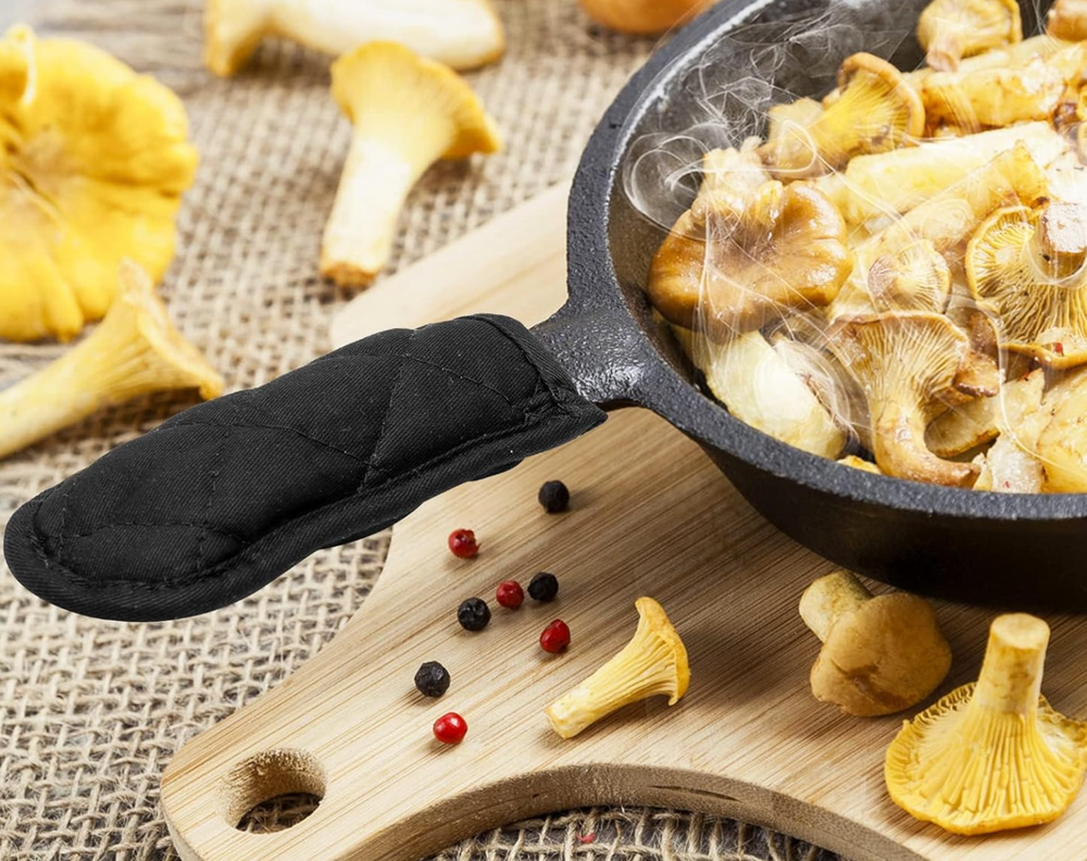 π₯ 2PCS Fabric Hot Handle Covers β Solid Black β Heat Resistant, Machine Washable Upgrade your cookware safety with this 2-piece set of solid black fabric hot handle covers , perfect for everyday cooking and cast iron lovers. Designed for comfort and protection, these stylish and practical covers are ideal for handling hot skillet and pan handles. π§€ Product Features: Durable Fabric β No Silicone Made from thick, heat-resistant fabric for flexibility and comfort. Heat Protection Helps shield your hands from hot cast iron, grill pans, and Dutch oven handles. Universal Fit Slides over most standard skillet handles with a snug, non-slip grip. Easy Care Machine washable for simple cleaning and long-lasting use. Sleek & Minimal All-black design matches any kitchen decor. π¦ Includes: 2 Fabric Hot Handle Covers β Solid Black (Approx. size: 6.5" x 3")