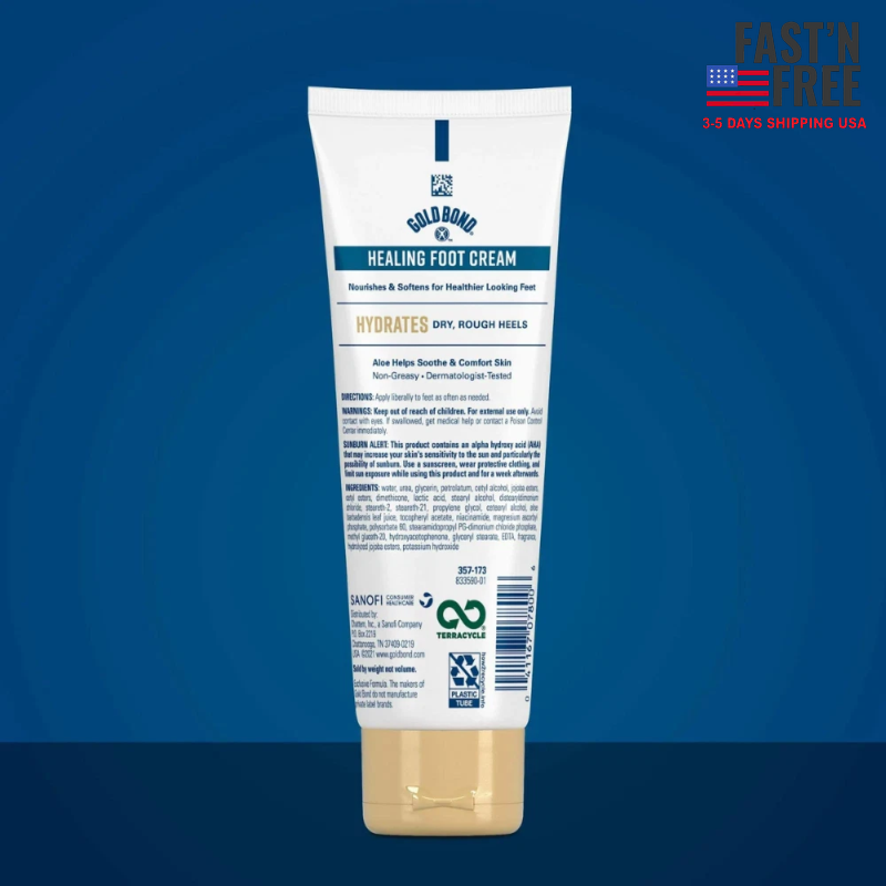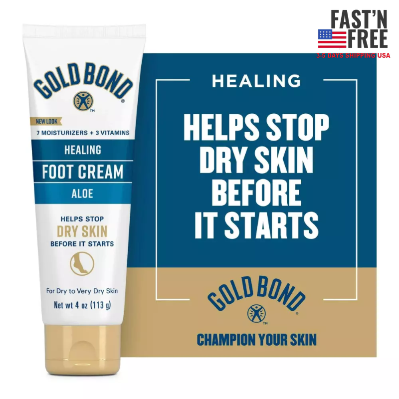 2PK Gold Bond Healing Hydrating Foot Cream for Dry Feet & Skin, 4 Oz, Relieving US Warehouse - FREE & FAST Shipping SALE!!! DESCRIPTION: Help stop dry skin before it starts with Gold Bond Healing Foot Cream. This healing moisturizer with aloe has a fresh, clean scent and provides long lasting moisture for skin that looks and feels noticeably healthier. Gold Bond Healing Foot Cream is made with seven intensive moisturizers and three vitamins, including vitamin B to help improve the appearance of skin, antioxidant vitamin C to protect against environmental stressors, and vitamin E to help prevent moisture loss. This Gold Bond foot cream is nongreasy hypoallergenic, and dermatologist-tested for everyday use. Use it to restore dry, rough skin on feet, heels, and toes. Includes one (1) 4-oz. bottle of Gold Bond Healing Foot Cream With Aloe Gold Bond Foot Cream hydrates dry, rough heels with 7 moisturizers and 3 nourishing vitamins Nourishes and softens for healthier-looking feet This Gold Bond Hand Cream has been tested by dermatologists and is hypoallergenic Made with aloe to help soothe and comfort dry, rough feet and heels Create a TerraCycle account and start recycling your empty Gold Bond packaging Features Relieving Brand Gold Bond Assembled Product Dimensions (L x W x H) 1.50 x 2.60 x 6.63 Inches SHIPPING: It takes about 3- 6 business days for delivery for USA order , Business days exclude weekends and holidays We do not ship to warehouse addresses RETURN & EXCHANGE: We stand behind the quality of our products and guarantee our workmanship 100%. Any defects or errors on our part will result in a replacement at no charge. We typically do not accept returns due to user error such as incorrect selection of sizes, designs, colors, etc. We just can accept return for damage or bad printing result, wrong size and design from us Therefore, if there are any issues about the item, please do not leave negative/neutral feedback, please contact us and give us an opportunity to resolve the problem first Before opening a return case on eBay, please contact us with the reason for return and send us proof like the picture, it will be easier for us to handle your problem. If you were pleased with this transaction, it is really appreciated to give us positive feedback, thanks! CONTACT US: If you have any question, feel free to contact us. We endeavor to respond within 24 hours. If you are not satisfied, please contact us immediately. We will do our best to resolve your concern FEEDBACK: If you are happy with your purchase, PLEASE take a moment to leave Positive feedback for us. We really appreciate that. If you are not happy with the purchase, PLEASE contact us to resolve the problem. We are always here to give you the best solutions. THANK YOU SO MUCH GOD BLESS YOU AND FAMILY!!!