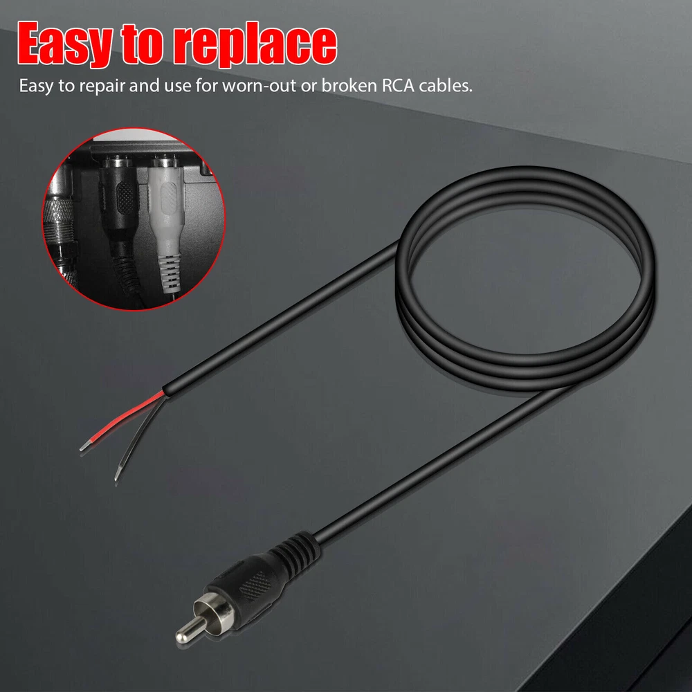Product Feature Replacement RCA cable, male plug jack to bare wire open-end repair cord. This RCA male plug jack repair cable cord used for worn-out or broken RCA cable, such as RCA cables for CD DVD player, HDTV, speaker, stereo receiver, audio-video av receiver, amplifier, tuner, home theater system, high fidelity HiFi system, etc. Easy to repair and use for worn-out or broken RCA cables. Wiring diagram: Center - Red wire; Outer - Black wire. Black color, it is a 10ft length RCA male plug to bare wire cable. Package contents: 2-Pack RCA male plug to bare wire open-end replacement repair cord cable. Product Specification Type 2 Pack RCA to Bare Wire Cable Connector A RCA Male Connector B Bare Wire Cable Length 10ft/3M Cable Specification 24AWG Compatible Devices Speaker, TV, DVD Player Package Included 2 x RCA to Bare Wire Cable