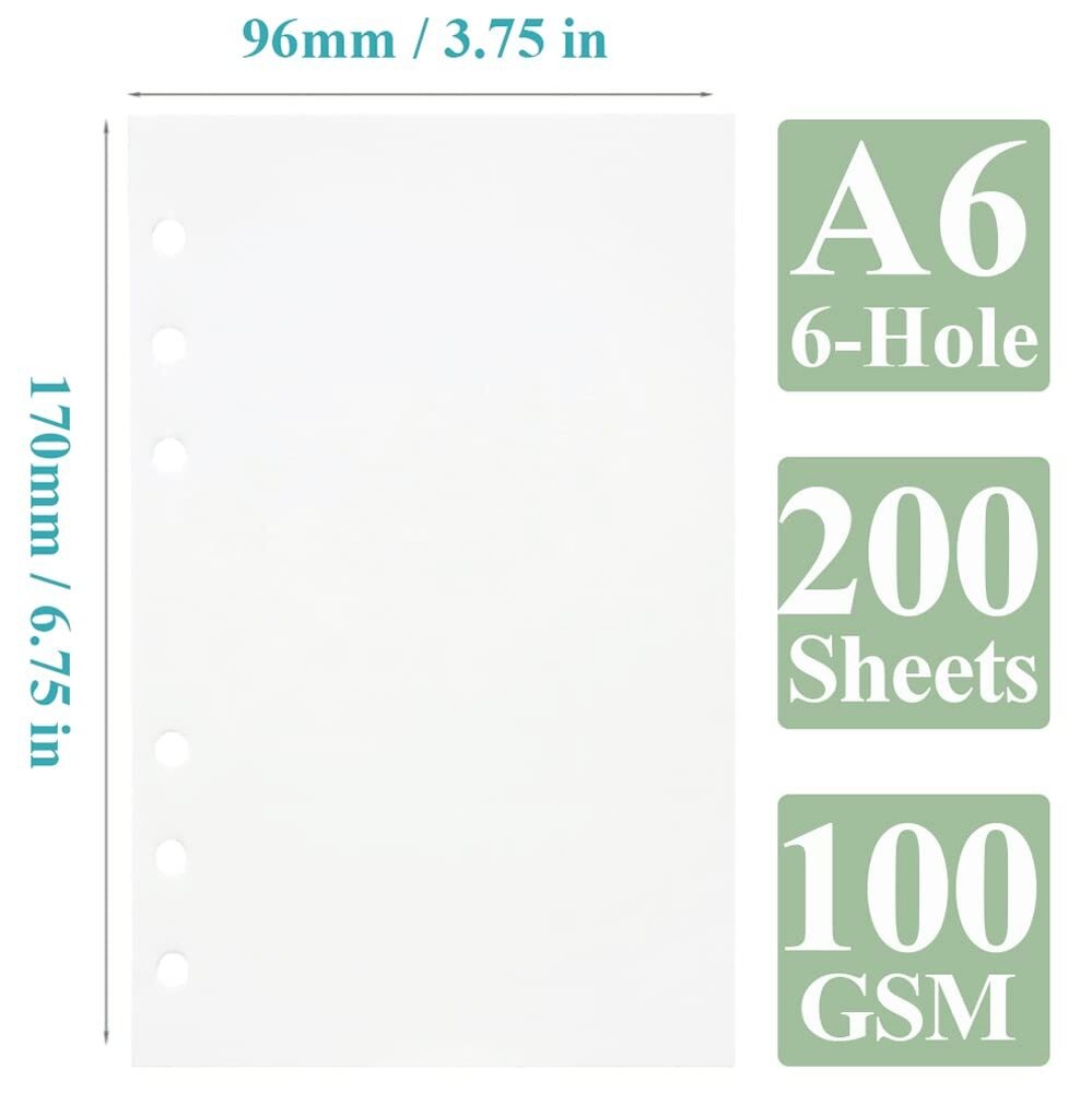 This blank refill paper size of 3.75'' x 6.75'', Each pack 100 sheets/200 pages, 2 pack, total 200 sheets/400 pages white paper. This blank paper with standar 6-hole insert, refill paper for A6 binder, 6-ring Filofax Personal Binder, LV Agenda MM etc. PERSONAL SIZE/SIZE 3 - 3.75'' x 6.75'' refill blank paper, each pack 100 sheets/200 pages, 2 pack, total 200 sheets/400 pages white paper. 6-HOLE - This blank refill paper with standar 6-hole insert, refill paper for A6 binder, 6-ring Filofax Personal Binder, LV Agenda MM etc HIGH QUALITY PAPER - Loose leaf blank paper with 100gsm white premium acid-free filler paper. You can write smoothly, and ink won't bleed through APPLY TO PEN TYPEs - A6 blank insert refill apply to pencils, fountain pens, ball-point pen, gel pen etc IDEAL FOR - Refill paper blank inserts works perfectly with binder notebook planner, ideal for bullet journaling, creative writing, work records, meeting record, class notes, travel diary, poem writing, doodles, project notebook for work, home or school