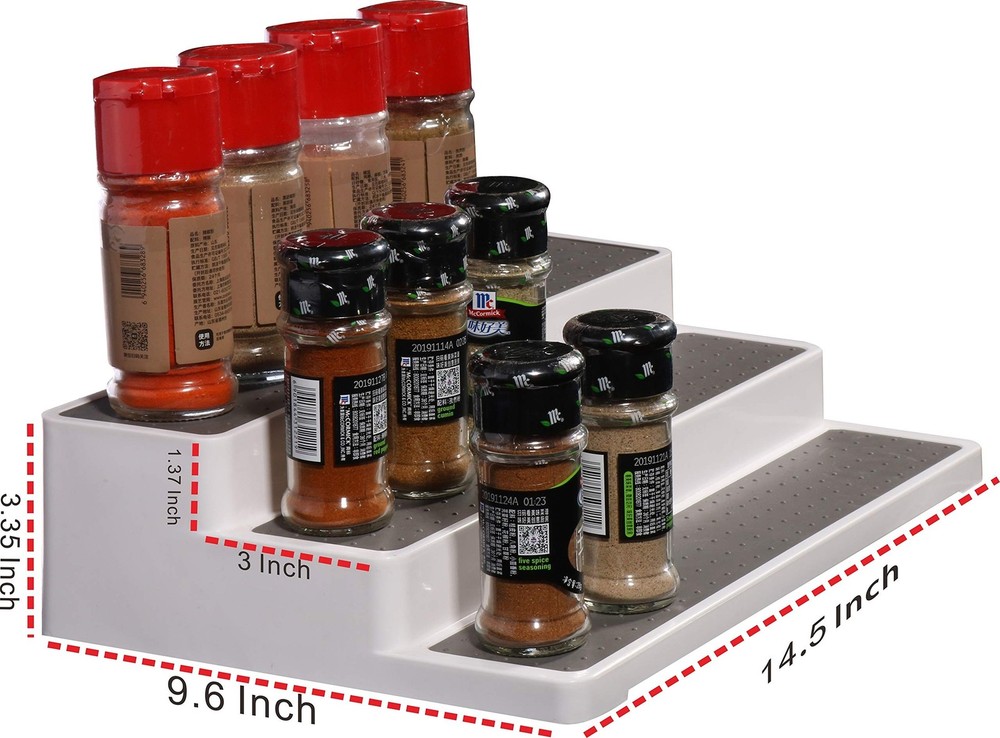 Cq acrylic 2 Pack Spice Rack Organizer for Pantry,14.5 Inch Tiered Seasoning Can Shelf Organizer For Cabinet,White Product Details Size: 14Inch-Pack of 2 Brand: Cq acrylic MPN: 14Inch-Pack of 2 UPC: Does not apply EAN: Does not apply Material: Plastic Color: White Special Feature: Kitchen Product Dimensions: 9.6"D x 14.5"W x 3.35"H Shelf Type: Tiered Shelf Material: Plastic Color: White Special Feature: Kitchen Product Dimensions: 9.6"D x 14.5"W x 3.35"H Shelf Type: Tiered Shelf Number of Shelves: 6 Room Type: Kitchen Finish Type: Polished Assembly Required: No Mounting Type: Countertop Recommended Uses For Product: Seasoning jar Included Components: mounting hardware for wall Item Weight: 16 ounces Brand: Cq acrylic Style: ladder Manufacturer: Cq acrylic Part Number: 14Inch-Pack of 2 Item Weight: 1 pounds Item model number: 14Inch-Pack of 2 Size: 14Inch-Pack of 2 Finish: Polished Shape: Rectangular Special Features: Kitchen Batteries Included?: No Batteries Required?: No Date First Available: February 28, 2019 High Quality:Color: White,Size: 14.5x9.6x3.35 Inch,This three-tiered step spice rack provides durable strength, waterproof, non-slip, easy to clean, easy to dry Multifunction:This spice rack boasts three tiers so you can easily store, organize and find a variety of spice bottles, medicine bottles, jars, cans, vitamins and many other items. Non-slip:For the safety of the products displayed, each layer has a non-slip surface to ensure your items wo nt slide off the rack and break in the process. Perfect Shape:shelf or countertop. The neutral, white and gray color scheme will seamlessly blend in with any existing decor. Versatile Use. In addition to organizing spices in the kitchen, you can use this handy accessory to store perfume, nail polish, lotion and other cosmetics in the bathroom, bedroom or vanity area. Its also available in 1- and 2-count options so you can organize more items in the same location or place in more than one room in your home.