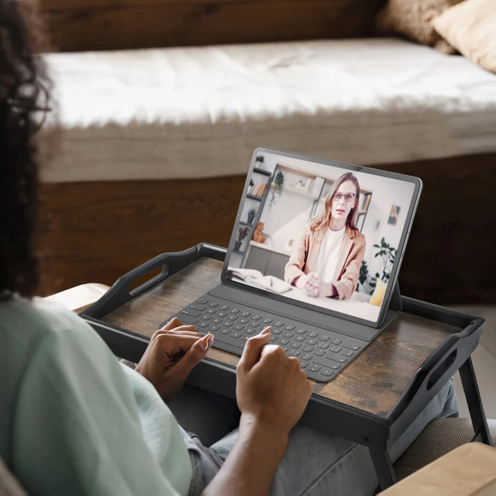 Folding Bed Tray Table with Handles and Groove for Breakfast in Bed or Sofa