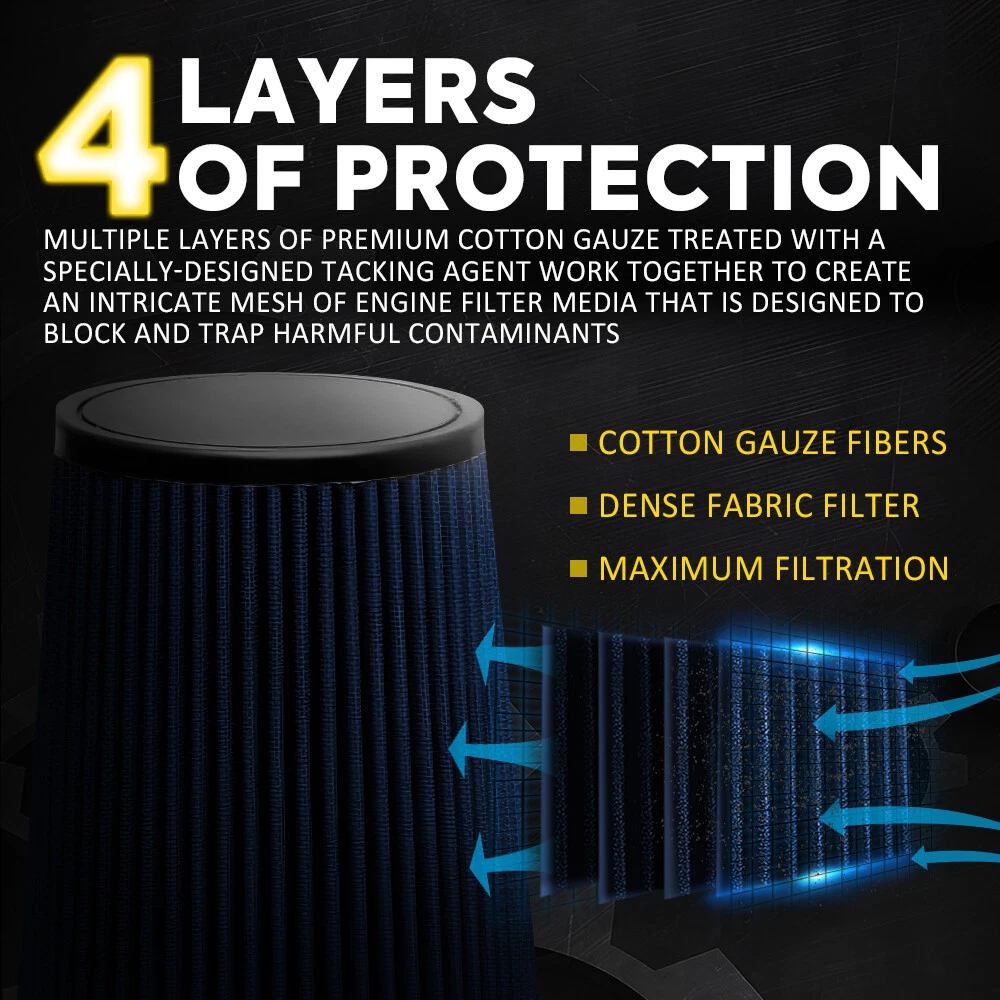 1 PCS 4" Blue Truck Long Performance High Flow Cold Air Intake Cone Dry Filter Specification: Material:Cotton Gauze Color:Blue Size:4 inch Features: 2set BLUE 4" inch Inlet Truck Air Filter DryFlow Clamp-On Round Cone Air Intake 1 PCS 4" Blue Truck Long Performance High Flow Cold Air Intake Cone Dry Filter Specification: Material:Cotton Gauze Color:Blue Size:4 inch Features: Engineered Power State-of-the-art air filter media is designed to increase horsepower and acceleration as well as improve overall engine performance. 4 Layers of Protection Multiple layers of premium cotton gauze treated with a specially-designed tacking agent work together to create an intricate mesh of engine filter media that is designed to block and trap harmful contaminants. Rugged Construction Universal Air Filters are manufactured with durable, premium materials and state-of-the-art construction methods to last a lifetime. Simple Installation It is the easiest and most cost-effective way to upgrade the performance of your vehicle. Universal Fitment Designed for use on a variety of applications. Store Services: All our product share 2-year warranty. If incorrect or defective item when you receive it, please feel free to contact us via eBay message. We will pay return shipping fee and arrange replacement ASAP. We are a professional shop. We devote ourselves to offering best product and good service.Any problem, complaint or suggestion happened during transaction, please contact us before leaving any feedback. We are committed to resolve all issues in a friendly and satisfactory manner. If you have any questions, please contact us, we will solve the problem for you within two working days Thank you! Item Specifics Brand AUXITO Type Dry Flow Filter(No oil) Interchange Part Number 4 4" in inches inch 102mm truck Long performance Manufacturer Part Number DGT-4IN-L Features Customized Easy Installation Placement on Vehicle Front California Prop 65 Warning This product may contains chemicals known to the State of California to cause cancer and birth defects or other reproductive harm. Color Blue Material Cotton Gauze Manufacturer Warranty 1 Year FAQ ♥ If you have a decoding problem or any other problems, please contact us first, we will help you with it. We will reply you within 24 hours in working days. I'm a new seller, thanks a lot for your trust and convince! I will serve you with all my heart. ♥ Q1: Will this bulb fit my vehicle? A: We can match almost any vehicle to one of our bulb sizes. eBay only lets us include some vehicle fitments per listing, but if your vehicle does not show up on the compatibility table at the top of our listings, welcome you to contact us for free consulation before purchasing a product. Q2: My item has not arrived, what's taking so long? A: Sometimes items take longer than expected, especially if it’s going far or to rural area. Check with your post office to see if your item has been held up. Sometimes Royal Mail will not update a tracking number until it has arrived at its destination. If your item still don't arrive after a few days, let us know so we can double check for you and help solve it asap. Q3: My bulbs won't fit, help! A: Special bulb holder may be required. See if you can take the holder from the stock bulb. If not, let us know. The bulb size may be wrong, double check the item you received with the item you ordered. Do you have an aftermarket lighting housing? These may not be perfectly fitted for aftermarket bulbs and will require some manual modifications. Q4: Neither side lighting up? Both sides flicker, hyper flash, or work inconsistantly. A:Check the light fuses, and then check the ballast plugs to insure correct installation. If this doesn't work, there may be a voltage problem with the vehicle. You probably just need a relay or capacitor. Even though some bulbs are builtin resistors, they may still need a decoder. Pay & Ship (1). We gladly accepts payment via PayPal, We will ship your item(s) within 24 hours. (2). Before payment, please keep the consistency of Paypal address and ebay address. (3). Quantity orders are welcome! Returns (1). We offer 60 days free return policy. Please contact us within 60 days from the date you receive your order if you have any issues with the product or want return. Refund will be send after we got your resend package. (2). All returned items should be in the original packaging , return tracking information should be provided . Contact Us (1).Negative feedback will not help resolve any problems you have, please contact us via eBay messages before leaving negative feedback , our customer service will make best effort to help you with the issues. (2).We maintain high standards of excellenceand strive for 100% customer satisfaction! Feedback is very important to us. We request that you contact us immediately before you give us neutral or negative feedback, so that we can satisfactorily address your concerns. About us We're professional in car and motorcycle accessories, especially in LED bulbs. We have our own factory and R&D team. Our belief is to sell top quality items that fit your car and serve you with our heart. Anything please feel free to contact us! Our customer service is very responsibility. Come and follow us! DESCRIPTION NEW ARRIVED HOT SALE CONTACT US SAVE US Store Category Store Home Other Hot Item AUXITO 4in Truck Long Performance High Flow Cold Air Intake Cone Dry Filter BLUE USD 26.59 6" Universal Truck Performance High Flow Cold Air Intake Cone Dry Filter Blue USD 23.99 6" 152mm Car Air Filter High Flow Cold Air Intake Dry Cone Replacement Universal USD 26.59 6" Red Short Truck Dry Type Filter High Flow Sport Cold Air Intake Cone 152mm USD 24.69 Red Cold Air Intake Filter Induction Pipe Power Flow Hose System Car Accessories USD 40.84 New List Item 10000PSI Grease Gun Coupler Quick Release Lock Oil Injection Nozzle Professional USD 11.39 Red Cold Air Intake Filter Induction Pipe Power Flow Hose System Car Acce