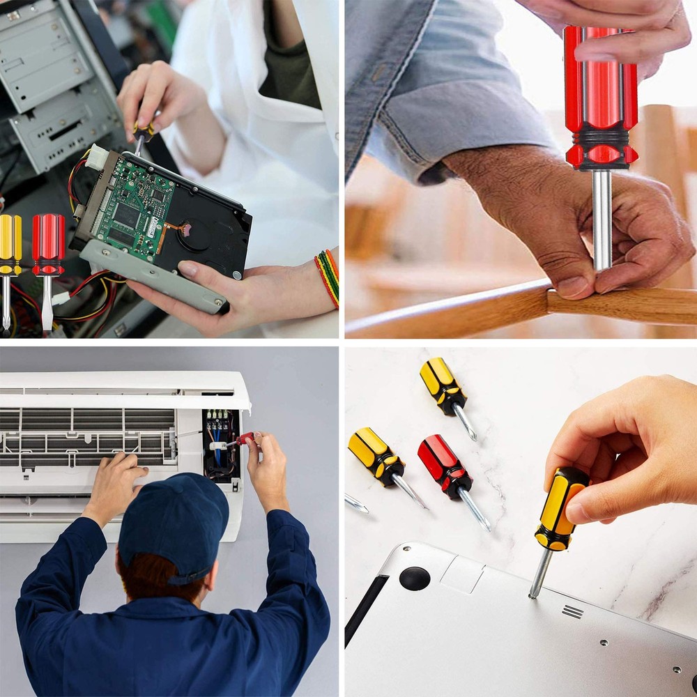 These radish short shank screwdrivers are a must-have for quick fixes! The compact size and non-slip handle make them perfect for tight spaces and small repairs. Made from durable chrome vanadium steel, they offer strong torque and long-lasting performance. The comfortable grip ensures easy handling, while the high hardness ensures they won’t bend or break easily. Ideal for furniture repairs, electronics, and precision work—great value for a 4-pack!