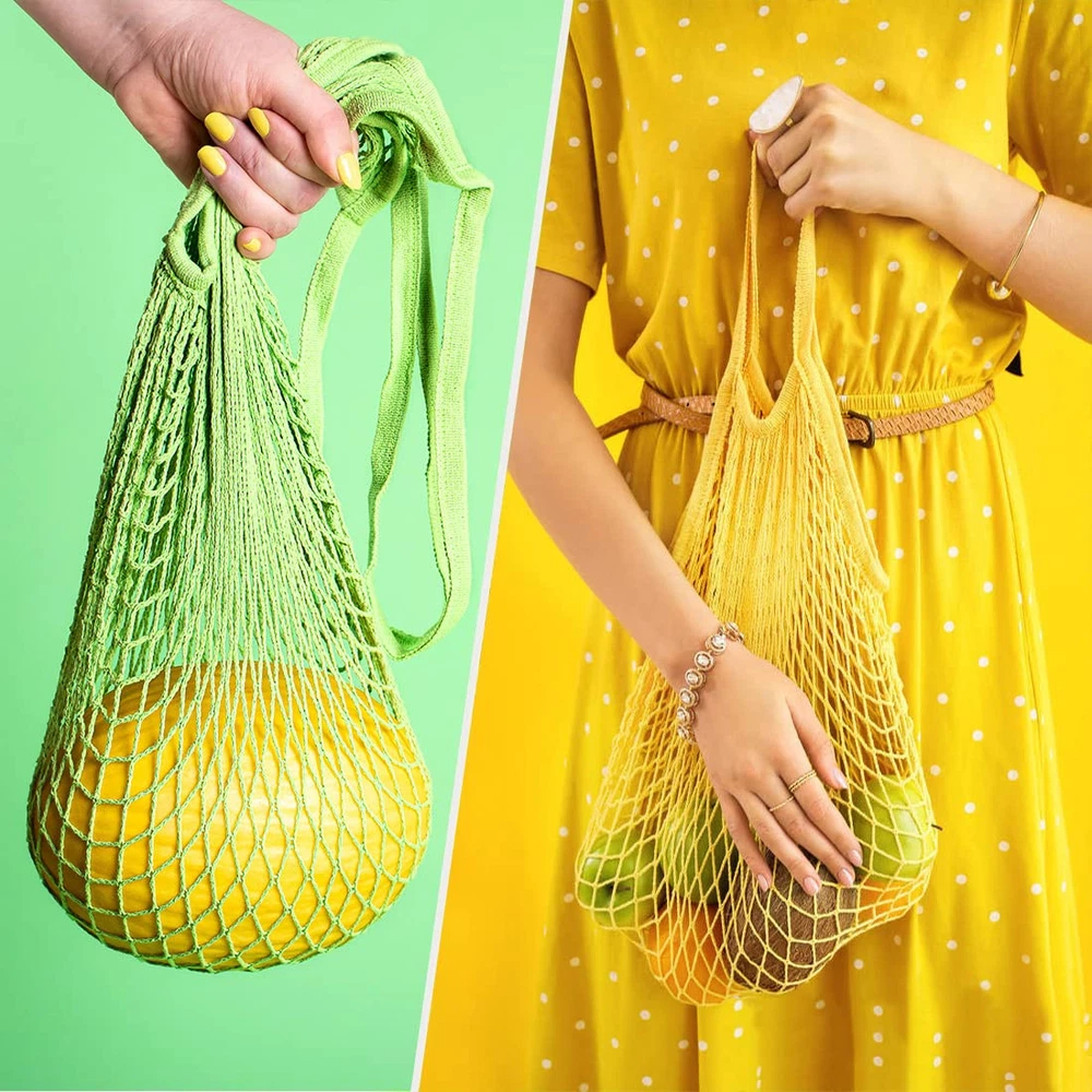 【Material Quality】This bag is made of 100% cotton, which is safe and environmentally friendly. 【Large Capacity and Sturdy】This bag is very sturdy and can hold a lot of things. It can be stretched, and the capacity after stretching may exceed your expectations. They are perfect for the home, grocery store and farmers market. The long handle makes it easy to carry, and you can tie a knot for added security. 【Light and Portable】This mesh bag is very light and very convenient to carry because it takes up very little space. You can keep them in your bag or in your car. 【Easy to clean and reusable】You can hand wash and machine wash, or dry in the dryer and use repeatedly. 【Wide Use】This stylish mesh storage bag can be used in many scenarios and hold various items. If it is used for shopping in shopping malls, grocery shopping, grocery storage, storage bags for vegetable and fruit merchants, it can be hung on the wall, or you can hang a basketball on the wall, it will look very fashionable and beautiful.