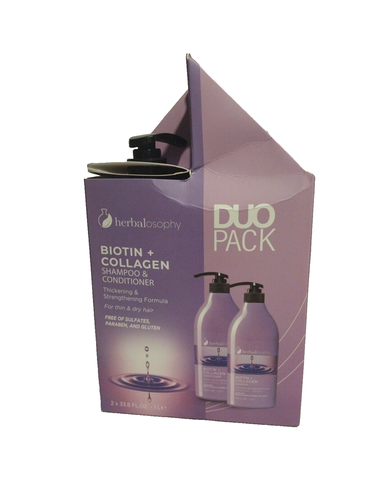 HERBALOSOPHY BIOTIN COLLAGEN Thicken Strengthen SHAMPOO CONDITIONER 33.8 oz.