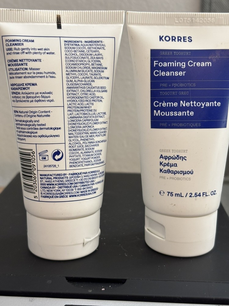 Size: 2.54 fl oz. 75 ml. Body Area: Face Ingredients: Citric Acid, Greek yogurt Period After Opening (PAO): 6M Sun Protection Factor (SPF): SPF 0 Product Line: Korres Country/Region of Manufacture: Greece gtin13: 5203069091056 Formulation: Cream UPC: 5203069091056 Type: Foaming Cream Cleanser Skin Type: All Skin Types Brand: KORRES Main Purpose: Facial Cleanser Volume: 2.54 fl oz Department: Unisex