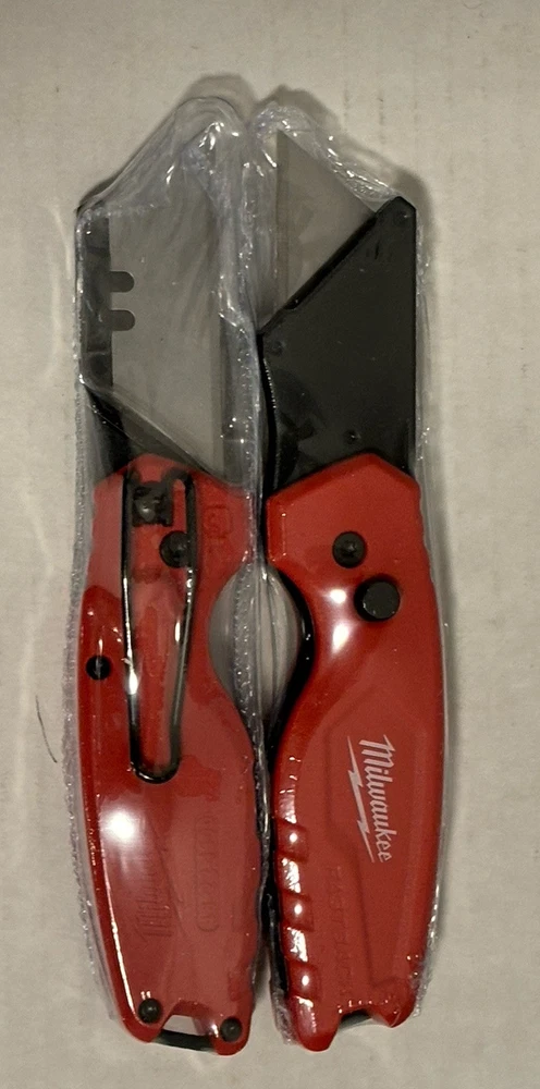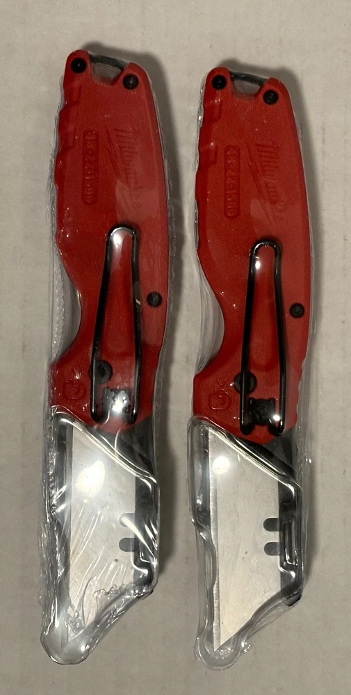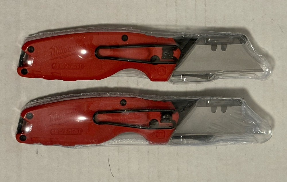 THIS IS IN STOCK - READY TO SHIP FREE SHIPPING TO ALL 52 STATES INCLUDING HAWAII & PUERTO RICO BRAND NEW NEVER USED MINT CONDITION WRAPPED IN HEAT SHRINK TO KEEP PROTECTED, NEW & UNUSED GENUINE MILWAUKEE MODEL # 48-22-1500 PURCHASE INCLUDES: TWO (2) GENUINE MILWAUKEE 48-22-1500 FASTBACK FOLDING UTILITY KNIVES WITH TWO (2) GENERAL PURPOSE BLADES BRAND NEW NEVER USED NOT REFURBISHED PLEASE MESSAGE US DIRECTLY IF YOU HAVE ANY QUESTIONS REGARDING THESE ITEMS PRIOR TO PURCHASING. TO SEE OUR OTHER BRAND NEW ITEMS FOR PURCHASE, PLEASE VISIT OUR STORE, OR CLICK ON SELLERS OTHER ITEMS. FOLLOW US TO SEE OUR UPCOMING LISTINGS OF NEW ITEMS. MANUFACTURE DETAILS: The Milwaukee FASTBACK Compact Folding Utility Knife features a press and flip mechanism for easy, 1-handed opening. The Milwaukee utility knife allows users to make quick, tool-free blade changes for maximum jobsite efficiency with a metal extension over the button to prevent accidental blade removal. The press and flip open utility knifes compact size allows for easy storing while a durable wire belt clip reduces pocket tearing. The small utility knife has a blade holder designed for scoring and includes a lanyard hole for convenient tethering. Press and flip opening Quick change Compact size Durable wire belt clip reduces pocket tearing Lanyard hole Blade holder designed for scoring Metal extension to prevent accidental blade removal. Purchase Includes: Two (2) Brand New Milwaukee 48-22-1500 FASTBACK compact folding utility knives with Two (2) general purpose blades TERMS and POLICIES SHIPPING….. No returns for items covered by manufacturer warranty. Please contact manufacturer warranty. REFUNDS….. We offer 100% refund for shipping damage, item NOT as described and/or different item. For other refunds, total refund will be reduced by 20% restocking fee and shipping fees (both ways). PICKUP….. Local pickup is available for all listed items in SEWELL, NJ 08080 If you are interested, please message us and we can arrange a time for you to pick up the listed items. FEEDBACK….. We leave feedback immediately after it is left for us. If you have any problem with the item or our service, please don’t be hasty in writing a negative review or feedback. We welcome you to contact us right away, our service team will respond within 24 hours, we will try our best to help solve the issue. Thank You for giving us a chance to solve the issue or improve our service. INTERNATIONAL ORDERS….. We don’t accept International orders ADDITIONAL SHIPPING….. If you need faster shipping term, insurance and/or signature, please contact us before making a purchase. SHIPPING SERVICES….. We will determine the shipping services (USPS, UPS or FEDEX) used to deliver item to your destination. MILITARY / APOADDRESS….. We do NOT ship to any military address. TURNAROUND TIME….. 99% of orders ship 1 - 3 business days after your payment is received. If your payment is received on Friday, it will be shipped on Monday (except holidays).