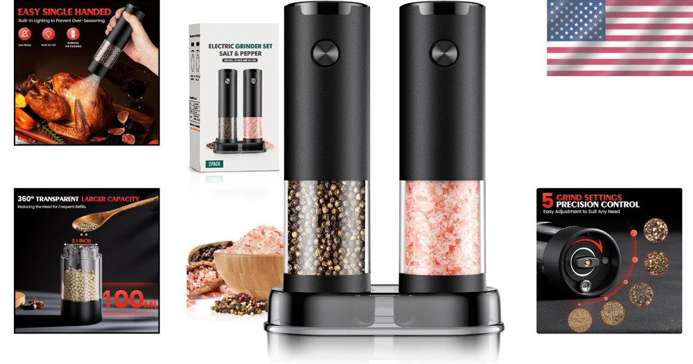 Rechargeable 2-Pack Electric Spice Mills with Built-In LED and Large Capacity ‹ › ‹ › ‹ › ‹ › ‹ › ‹ › ‹ › ‹ › ‹ › Rechargeable Electric Spice Mills 2-Pack Elevate your culinary experience with our dual Rechargeable Electric Spice Mills, featuring a built-in LED light and generous capacity. Perfect for gourmet cooking, these spice mills will bring an exquisite touch to your kitchen or dining table. Features: Adjustable Coarseness: Effortlessly twist the knob to select from five levels of coarseness, catering to all your cooking preferences. Simple Operation: Battery-powered with a one-button operation; just press to grind and release to stop, giving you total control over the amount of seasoning in your dishes. Built-in Bright Light: Illuminate your spices with a built-in bright light, allowing you to check particle size and achieve the perfect seasoning even in low light. Durable Ceramic Blades: Engineered with wear-resistant ceramic blades that maintain performance without deformation, easy to detach for cleaning after each use. Large Capacity: The 360° transparent container enables easy monitoring and minimizes refills, paired with a stable storage base for convenient organization. Benefits: Personalize your spice preferences with adjustable coarseness. Convenient one-button operation, perfect for busy kitchens. Illuminated grinding for precision seasoning. Robust construction for long-lasting use. Spacious capacity for minimizing disruptions during meal preparations. Why Choose Our Rechargeable Electric Spice Mills? Unleash your culinary creativity with ease and precision using our Rechargeable Electric Spice Mills. Designed with you in mind, their adjustable coarseness, lightweight construction, and built-in lighting make grinding spices a breeze, ensuring every meal is seasoned to perfection. Whether you’re cooking for a family gathering or entertaining guests at a barbecue, these spice mills will enhance your kitchen experience with sophisticated style and practicality. Don't settle for ordinary—transform your seasoning game with our premium spice mills. Order your 2-pack today and embrace the art of fine cooking! Shipping Free & Fast Shipping - We offer free shipping to most of the USA with a normal delivery time of 3-10 businessdays. However, due to various situations, additional delivery time (up to 3 weeks) may be required for some items. Alternative Carriers - We may use alternative carriers (e.g. USPS, FedEx, UPS, etc.) to ensure your package arrives safely and on time. Due to the use of multiple carriers, we are unable to provide a tracking number automatically. Handling Time - Orders are processed and shipped within 1-5 business days of receiving cleared payment. Shipping Restrictions - Shipping to Alaska, Hawaii, Puerto Rico, Guam, and other US territories may incur shipping charges or delivery restrictions. Please contact us before ordering, or your order can be refunded/cancelled. State Restrictions - There may be restrictions based on your state of purchase. For example, certain items may not be shipped to California due to state regulations. Contact for Tracking Updates - If you require tracking updates or have any concerns about the delivery of your order, please feel free to contact us, and we will be happy to assist you. Return Please see our ebay return policy. We do not accept return on most products. This is to avoid customers mis-using ebay returns. All sales are final. Please be sure to check the return policy listed at the top of the listing. In rare cases, we may accept returns, if the buyer pays both ways shipping and 20% restocking fee. If you are un-sure of return policy of a particular item, please ask before buying. Payment We accept all major credit cards, PayPal, and Apple Pay for your convenience. Your payment information is secure and encrypted to ensure a safe and seamless transaction. Please complete your payment within 3 days of purchase to avoid any delays in shipping. Feedback Your feedback is extremely important to us. We strive to provide the best products and customer service possible. If you are satisfied with your purchase, please take a moment to leave us a positive review. If you have any concerns or issues with your order, please contact us before leaving negative feedback. We are committed to resolving any problems and ensuring your satisfaction. Contact Us If you have any questions or concerns, please feel free to reach out to our customer support team. You can contact us through the eBay messaging system. We are available Monday to Friday, 9:00 am to 5:00 pm EST, and we will do our best to respond to your inquiry within 24 hours. Buy it now and enjoy a pleasant shopping experience! UPC: Not Set Model: Not Set Unit Quantity: 0.63 Material: Ceramic,Plastic Features: Adjustable Coarseness,Automatic,Electric,Manual,With Storage Base Set Includes: Salt & Pepper Grinder/Mill,Storage Base Brand: Unbranded Color: Black/Black Type: Electric Grinder/Mill Number of Items in Set: 2 MPN: Not Set Theme: Not Set Size: Medium Country/Region of Manufacture: Not Set Power Source: Battery Item Height: Not Set Style: Modern Pattern: Not Set Making Method: Not Set Manufacturer Warranty: Not Set Item Weight: 0.63 kg Item Width: Not Set Item Depth: Less Than 10 in Power: Battery Powered Unit Type: Not Set Personalize: Not Set