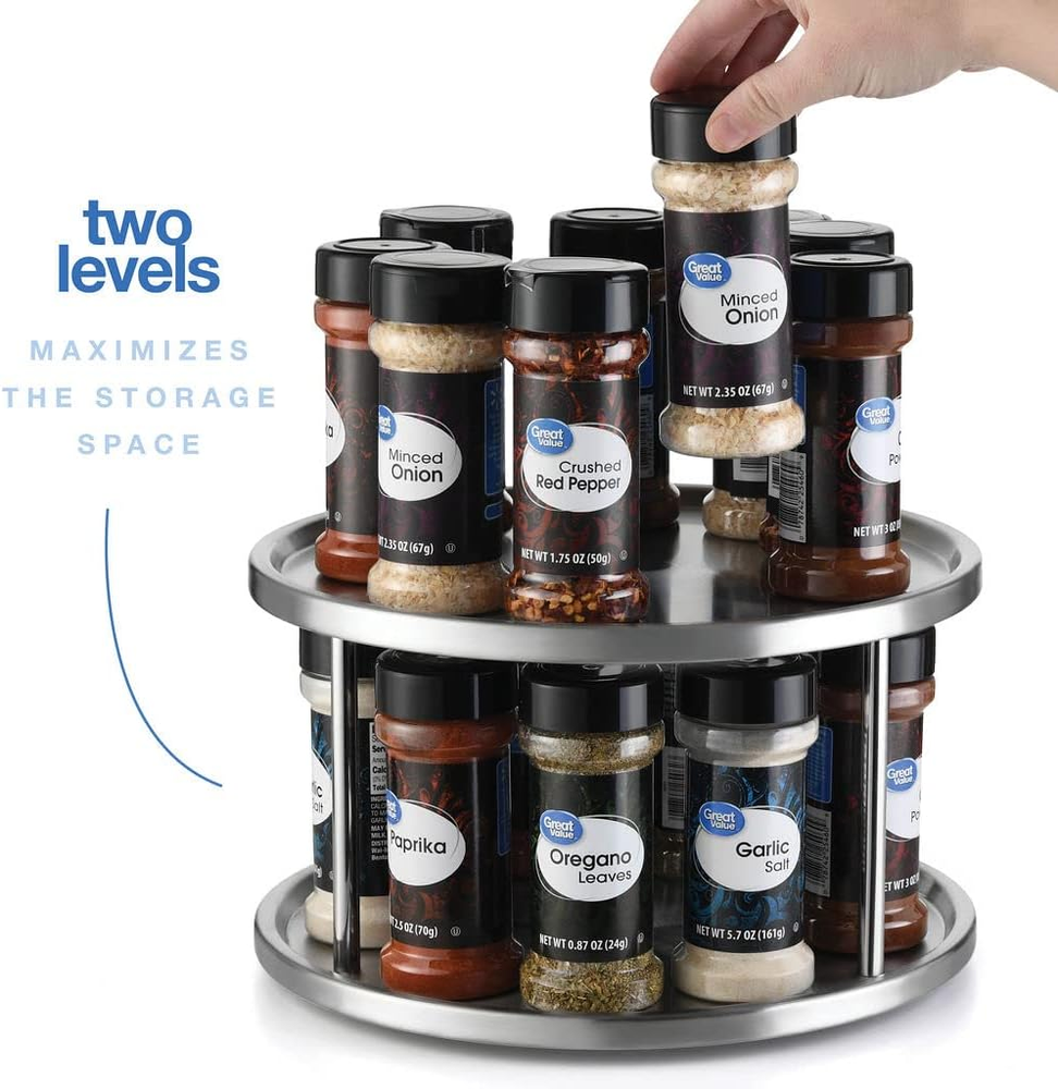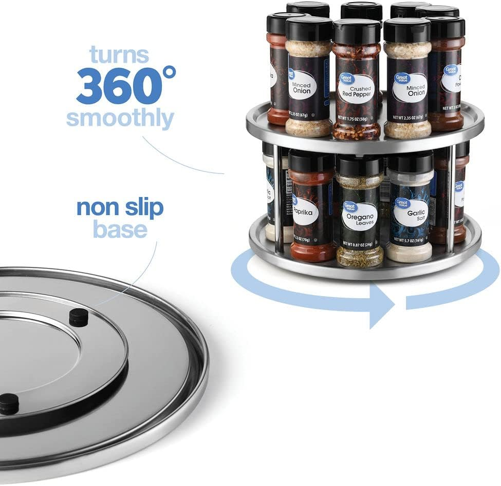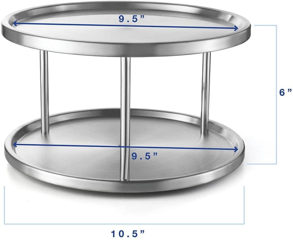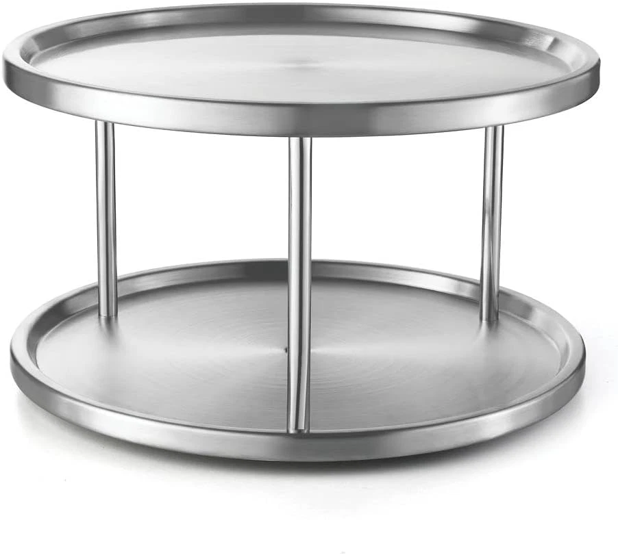 Store New Arrivals Add to Favorite View Feedback 2 Tier Lazy Susan - 2 Pack Stainless Steel 360 Degree Turntable – Rotating Tabletop Stand for Your Dining Table, Kitchen Counters and Cabinets – Spice Rack Organizer Tray 10.5" Diameter - 2 Pack Description Room Type Dining Room Special Feature Stainless Steel, Durable Assembly Required Yes Shelf Type Tiered Shelf Color Silver Is Discontinued By Manufacturer No Product Dimensions 9.4"D x 9.8"W x 1.5"H Material Stainless Steel Style Tier Item Weight 1.21 pounds Mounting Type Tabletop Finish Type Brushed Size 2 Tier - 2 Pack Pack of 2 -- ORGANIZE YOUR KITCHEN IN STYLE: Dimensions: 10" diameter -- Keep all the jars with the spices and condiments, other small containers, and the table napkins organized with the 1tier Lazy Susan. The rotating turntable will allow you to save space and keep your seasonings within easy reach. You can place the 1-tier turntable in your kitchen counter or cabinet and even on your dining table, so that everyone can reach for the salt, pepper or napkins by themselves. A BEAUTIFUL SERVING 2 TIER TRAY: Apart from using the 2 tier Lazy Susan as a spice rack organizer, you can also use it as a grand serving tray to serve your meal during family dinners. The 360° swiveling tabletop stand will also offer you a true British tea drinking experience, since you can serve finger food, scones and other afternoon tea snacks on it while you’re enjoying your tea or coffee with your friends. The options are endless! STURDY ROTATING CONSTRUCTION: No matter how many jars and other items you put on the 2 tier of the rotating Lazy Susan, they will never fall and create a mess. The two levels of the Lovotex swiveling table stand have raised rims which will prevent any item from sliding off. Thanks to the smart and safe design, and the sturdy construction, this is the safest and strongest two tier turntable on the market! Try it out and see for yourself! STAINLESS STEEL WILL NEVER FAIL YOU: Made with heavy duty stainless steel, this 2 tier Lazy Susan does not only look sleek and elegant, but it is also extremely durable. The corrosion resistant stainless steel trays can be hand washed and thanks to their brushed finished, your fingerprints will not leave marks. Get the metal 1-tier turntable now and, trust us, you will never have to replace it with a new one – that’s a promise. ASSEMBLE IT FAST AND EFFORTLESSLY: The Lovotex 360-degree turntable does not arrive to you preassembled. But don’t worry, because the assembly of the two stainless steel trays is going to be fast, easy and effortless. All of the pieces that you need for the setup are included in the package. All you have to do is take them out and follow the instructions. Soon the two-tiered turntable organizer will be sturdy and ready to be used. Product Description TURNS SMOOTHLY 360° NON SLIP BASE DIMENSIONS: 10.5" DIAMETER - 6" HEIGHT CAN BE USED ALMOST ANYWHERE IN YOUR KITCHEN 2 Pack - 2 Tier Lazy Susan Spice Rack Organizer Stainless steel 2 tier Lazy Susan spice rack a 360-degrees rotating turntable for your dining table, kitchen cabinets and counters. Your kitchen will now become more organized and all of your spices, condiments and seasoning will be within easy reach. STURDY 360 rotating This 2 tier lazy susan spice rack for cabinets turns a complete 360 degrees. Turns easy and smooth Key Features Pack Of 2 Dimensions: 10.5" diameter - 6" height between 1st and 2nd tier Great for countertops, cabinets, tables, vanity etc. Space Saver spice rack Super easy assembly Strong and durable Finally! A Spice Rack Organizer That Is Actually Practical! Do you always have trouble finding the right condiment jar in your kitchen cabinets? Have your spice containers occupy too much space? Do you wish your kitchen was more organized and functional? Lovotex presents you with the stainless steel 2 tier Lazy Susan, a 360-degrees rotating turntable for your dining table, kitchen cabinets and counters. Your kitchen will now become more organized and all of your spices, condiments and seasoning will be within easy reach. A Spice Rack Organizer Or A Serving Tray? Actually, our two-tier Lazy Susan can do both! This means that you can use it both as a storage for your spices and as a serving plate. You can serve anything you want on it –hot and cold meals, snacks, desserts, fruit and baked goods. We do recommend that you hand wash the two-tiered turntable in order to ensure its longevity and sleek look. The stainless steel turntable will ever get rusty, bend or break, even if you use it daily and load it with many items. In addition, the strong steel construction will always be sturdy and the clean, brushed finish will look so good in your kitchen! ABOUT US We offer the best prices around on high quality products. Our E-store includes media such as books, movies, music and games while offering electronics, toys, sporting apparel, clothing, tools, general home, garden items and more. SHIPPING We are always working hard to ensure your package arrives as soon as possible. Please understand that some factors like weather, high postal traffic, and the performance of shipping companies are outside of our control. We offer free shipping to the lower 48 states and ship within 2 business days of payment, usually sooner. We do not accept P.O. Boxes. Please provide a physical address. RETURNS We offer a 30-Day Return Policy on items which you are not completely satisfied with. You have the option for a full-refund or an exchange of the item. No returns are available on items shipped outside of the USA. PAYMENT We accept PayPal. CONTACT US This page content is yet to come Please ad us to your favorite seller and visit again later Thank You
