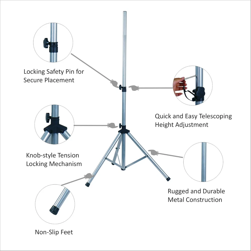Store New Arrivals Add to Favorite View Feedback Contact 2-Pack Universal Tripod Speaker Stands with Adjustable Height, 35Mm Compatible Insert, Locking Knob and Shaft Pin, Silver (STSD-71W-PAIR) Description Item model number 2-Pack, Silver, 3.5 to 6.8-Foot Color silver Is Discontinued By Manufacturer No Material Rubber Item Weight 5.94 Kilograms Model 2-Pack, Silver, 3.5 to 6.8-Foot Finish Type Polished or Painted Package Dimensions 39.3 x 11.1 x 6.4 inches This package includes two STSD-71W stands. The STSD-71W is a heavy-duty speaker stand with 1 3/8” (35mm) tube diameter. The telescoping center column allows you to adjust height from 41.4” to 81.8”. It’s compatible with Sound Town speakers and any other speakers which come with 35mm inserts Tripod leg design increases stability, allowing the stand to hold speakers up to 130lbs Easy set up with handed tightened screw locks. Additional locking shaft pin gets your speakers securely off the ground Rugged non-slip rubber feet are placed on the three legs to prevent your speakers from sliding; it’s ideal for both on-stage and in-studio use The speaker stand package includes two Sound Town STSD-71W speaker stands. The STSD-71W is a heavy-duty speaker stand that comes with rugged construction and provides secure and stable elevation for speakers weighing up to 130lbs. Its telescoping center column allows you to adjust height ranging from 41.4â to 81.8â. The speaker stand is compatible with both Sound Town speakers and the other speakers with 35mm inserts. The speaker stand has hand tightened screw locks for easy set up. The locking pin adds extra security while you can perform on the stage with worry free. The non-slip feet are suitable for any surface and the equal length distribution of the three legs makes the base stable and safe. FEATURES This package includes two STSD-71W stands. The STSD-71W is a heavy-duty speaker stand with 1 3/8â (35mm) tube diameter. The telescoping center column allows you to adjust height from 41.4â to 81.8â. Itâs compatible with Sound Town speakers and any other speakers which come with 35mm inserts Tripod leg design increases stability, allowing the stand to hold speakers up to 130lbs Easy set up with handed tightened screw locks. Additional locking shaft pin gets your speakers securely off the ground Rugged non-slip rubber feet are placed on the three legs to prevent your speakers from sliding; itâs ideal for both on-stage and in-studio use ABOUT US We offer the best prices around on high quality products. Our E-store includes media such as books, movies, music and games while offering electronics, toys, sporting apparel, clothing, tools, general home, garden items and more. SHIPPING We are always working hard to ensure your package arrives as soon as possible. Please understand that some factors like weather, high postal traffic, and the performance of shipping companies are outside of our control. We offer free shipping to the lower 48 states and ship within 2 business days of payment, usually sooner. We do not accept P.O. Boxes. Please provide a physical address. For shipping outside of the continental USA, we only use eBay's Global Shipping Program.The item is shipped to KY and then sent to the rest of the world. International customers are responsible for all duties and taxes. Continue to check out in order to calculate costs for shipping the item to your country. Messages regarding eBay's Global Shipping Program MUST be directed at eBay EXCLUSIVELY. RETURNS We offer a 30-Day Return Policy on items which you are not completely satisfied with. You have the option for a full-refund or an exchange of the item. No returns are available on items shipped outside of the USA. PAYMENT We accept PayPal. CONTACT US This page content is yet to come Please ad us to your favorite seller and visit again later Thank You CUSTOMER SATISFACTION We try our very best to make sure every customer is completely satisfied. If there's a problem, message us! We're happy to help. WE ACCEPT Copyright © 2021 AutoDS. | All Rights Reserved