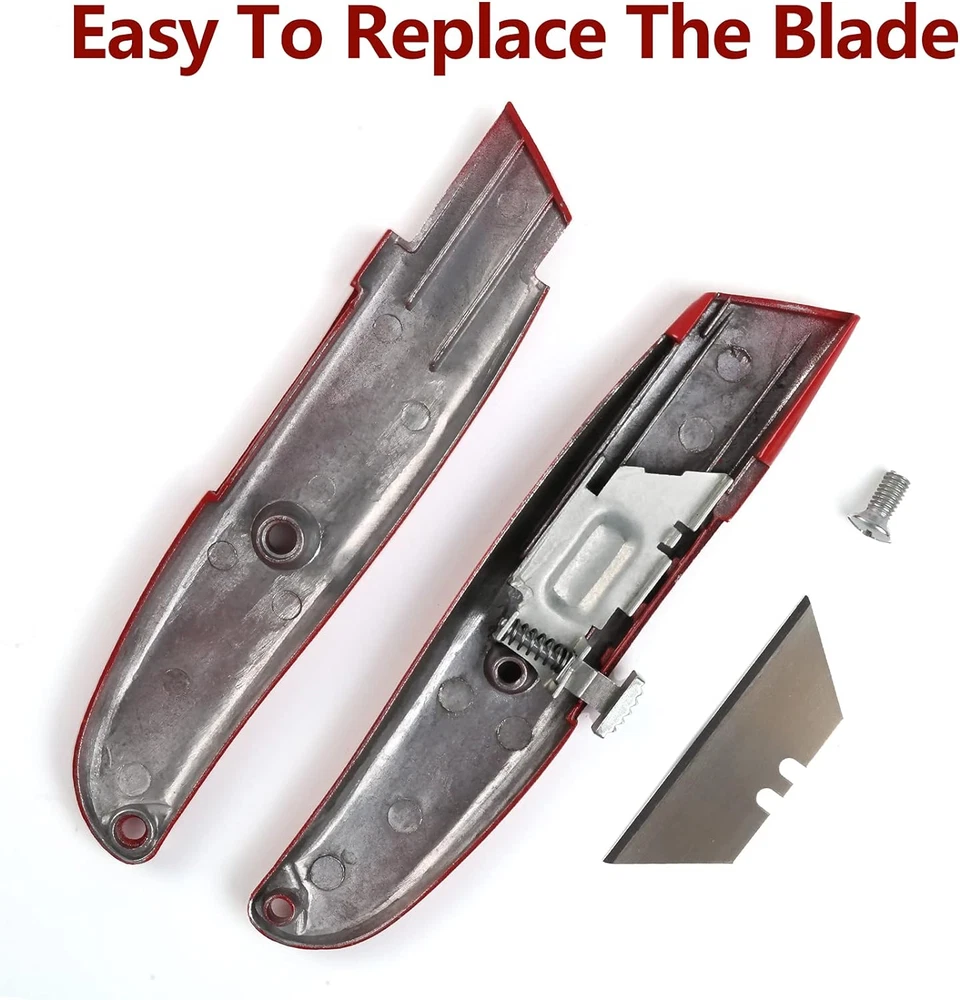 WHAT YOU WANTED: Economical and disposable box cutting blades.Comfortable grip and wider retractable blade. WIDELY USED:Ready to use, cut and toss or keep some around as a spare utility knife in your garage, tool kit, home and office. MORE WIDER BLADE - Heavy Duty Ideal for Thicker Cuts. Use for commercial or industrial applications like thicker paper, tape, plastic, cardboard, balsa, bass wood, photos, coupons, cardstock, mat board, foam board, delicate fabrics, crafts, amazon, ups or post office packages. SAFETY & EASY: Razor blade for deep exact cuts. Prevent blade slipping with the safety lock tab. PACKAGE CONTAINS: 2-piece heavy duty retractable box cutters. The utility knife has 8 different colors among which black, blue, green, orange, pink, red, silver and yellow. Please choose the one you prefer. Product Description DIYSELF———WELL WORTHY BRAND DIYSELF is a professional manufacturer of office products and household tools. We have our own factory and professional designers. Our products are carefully crafted by experienced workmen. We are committed to providing our customers with quality products and perfect service. Ultra Sharp Box Cutter The utility knife blade is made of SK-5 high carbon steel, trapezoid-shaped blade. The blade is thicker than the normal utility knife, the heavy-duty box cutters are more sharp and more durable. Premium Utility Knife Replace The Blades Easily The shell of the box cutter knife is made of aluminum alloy, comfortable to hold. As long as you use a screwdriver, you can replace the razor blades. When replacing the blade, you'd better wear gloves. Box Cutters Retractable Press and hold the slider to change the blade length. Different blade lengths help you cut different materials, easy and convenient. Heavy-Duty Utility Knife For What You Need The durable box cutter is perfect for adults and teenagers for daily use, suitable for various occasions, such as workers can use it to open boxes, housewives can use it to open wrappings, students can use it for crafts, and hikers can use it for camping.