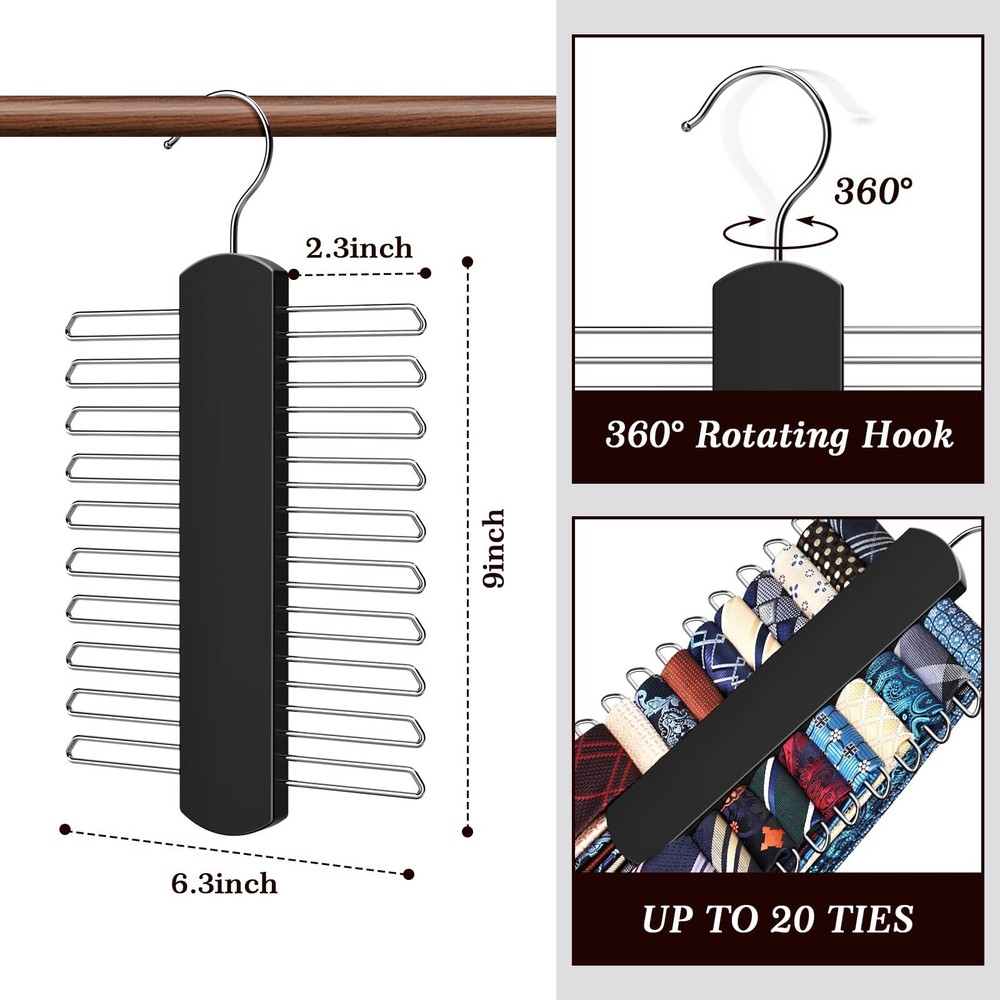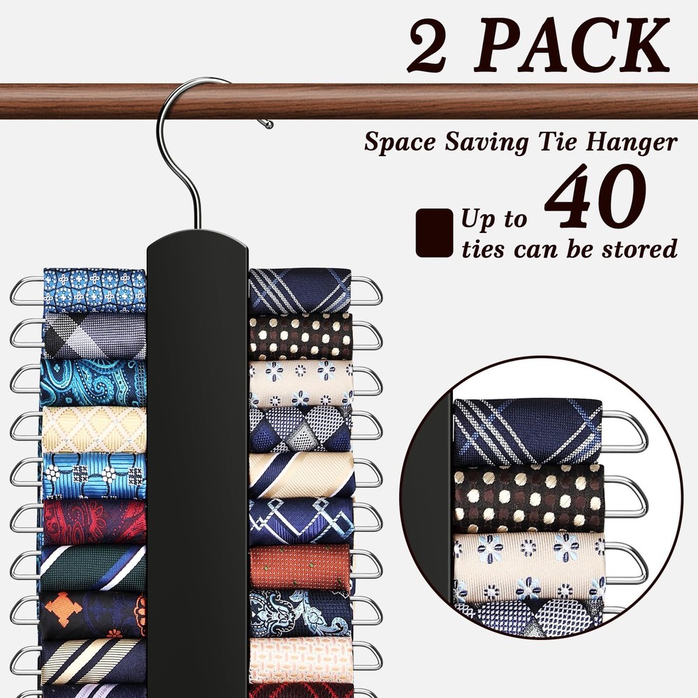 2 Pack Tie Rack for Closet, Premium Wooden Necktie Organizer Storage Tie/Belt Hanger, 360 Degree Swivel Space Saving Ties Holder for Men Hanging 40 Ties Black Say goodbye to the time-consuming task of digging through drawers or dealing with a cluttered closet just to find the perfect tie.Our Tie Rack is designed to hold and display up to 40 ties at once,ensuring that your tie collection stays neatly organized and easily accessible. Space-saving Solution: This tie hanger for men conveniently hangs over the back of any standard-sized closet or bedroom door.No need for complicated installations or drilling holes in your walls.Simply hang the rack over the door and voila!Your ties are now neatly displayed and ready to be chosen for any occasion. Rotatable Design for Easy Access: Each tie rack features specialized hooks and holders to securely hold your ties in place.No more worries about ties slipping off or getting tangled.You'll have a clear view of your entire tie collection,making it effortless to coordinate your outfit and accessorize with ease. Versatile and Multi-functional: Necktie organizer storage is suitable for ties and works great for organizing belts, scarves, and other accessories.Maximize your closet space and transform your morning routine with this convenient and efficient storage solution. Upgrade Your Closet: Upgrade your closet organization with our tie hanger and enjoy quick and easy access to your entire tie collection.No more hassles or frustrations - just a neatly organized closet that makes getting ready a breeze! Shipping We offer FREE shipping on all orders! We ship within Three business days of payment, usually sooner. We use a selection of shipping services such as UPS, FedEx, USPS etc. We only ship to the lower 48 states, no APO/FPO addresses or PO Boxes allowed. Local pickups and combined shipping options are not provided at this time. Return You can return a product for up to 30 days from the date you purchased it. Any product you return must be in the same condition you received it and in the original packaging. Please keep the receipt. Feedback Customer satisfaction is very important to us. If you have any problem with your order, please contact us and we will do our best to make you satisfied. Contact Us If you have any queries, please contact us via ebay. We usually respond within 24 hours on weekdays. Please visit our eBay store to check out other items for sale! Thank you for shopping at our store.