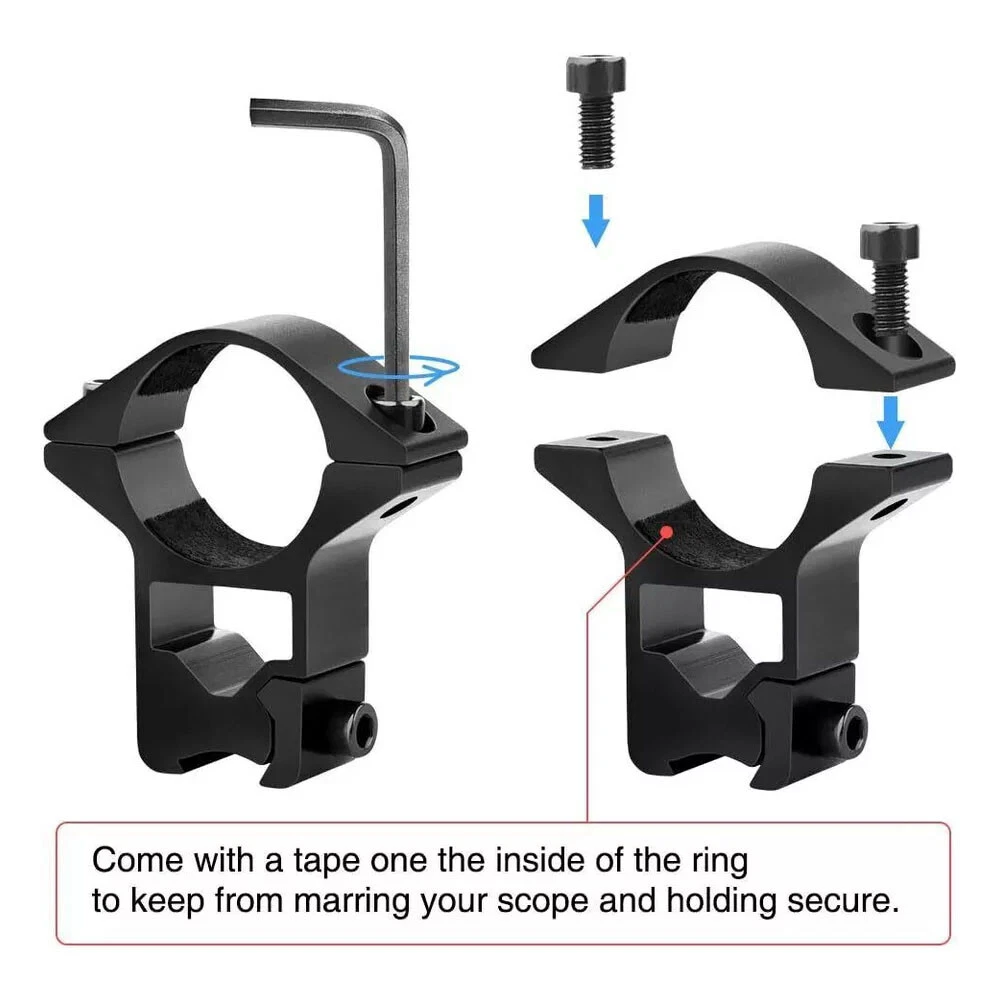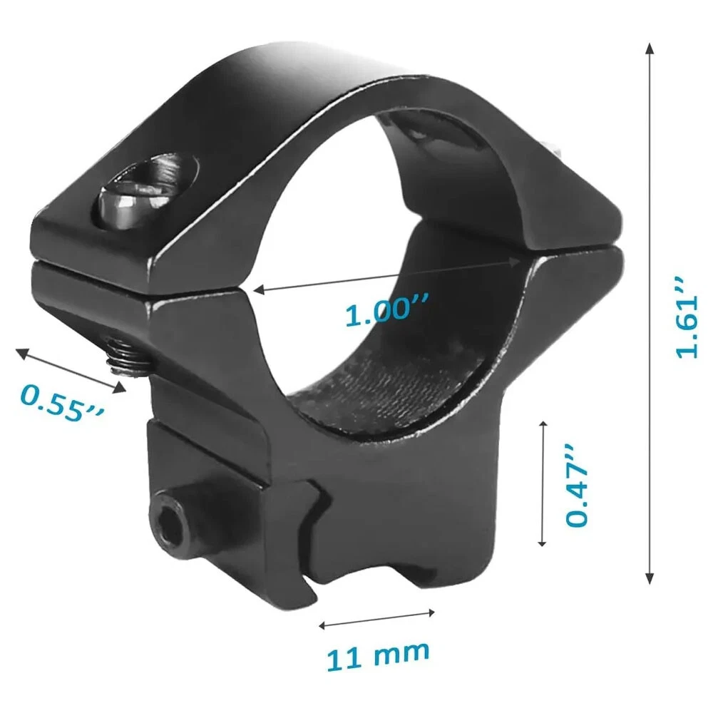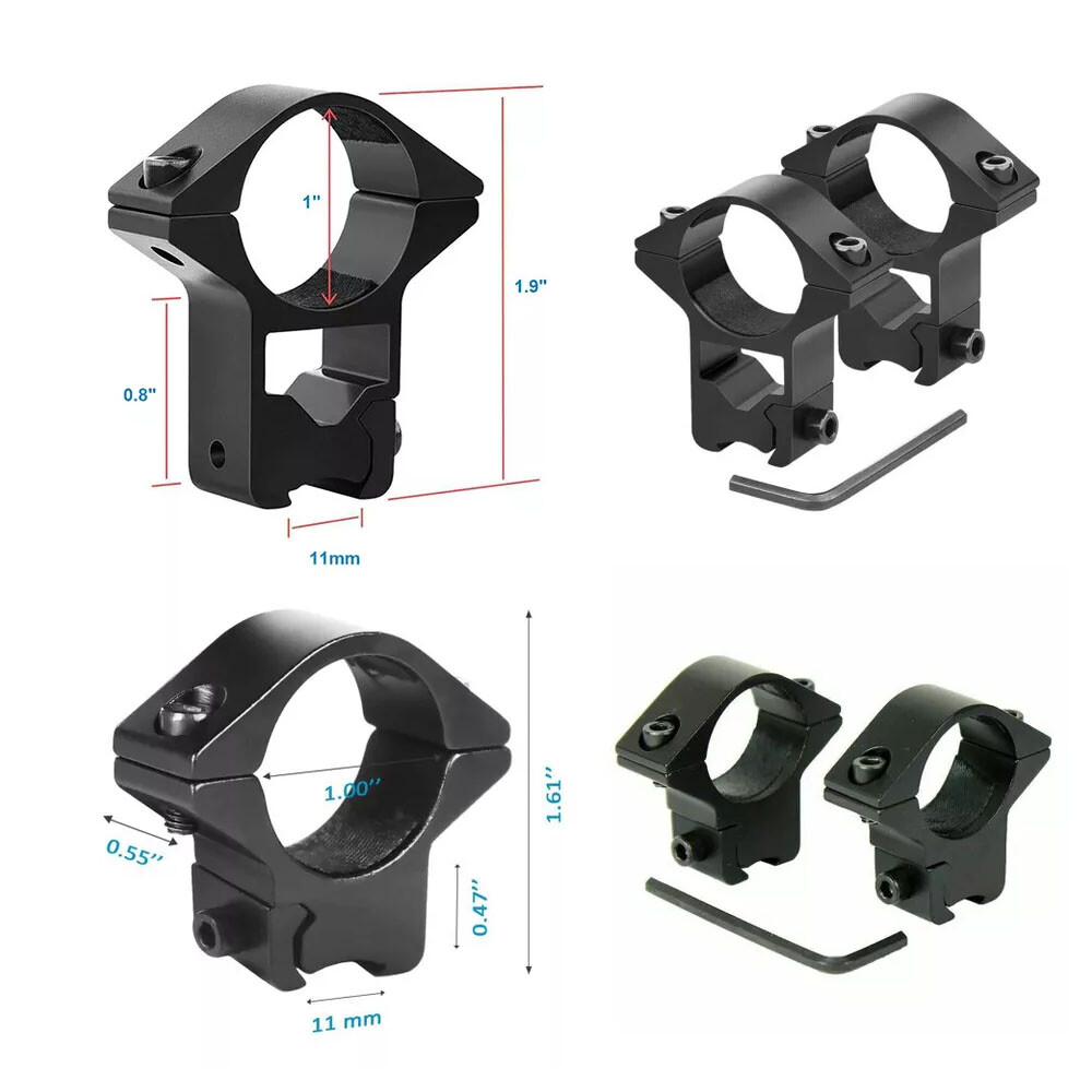 Heavy Duty 1"Scope Ring Picatinny Weaver Rail Laser Torch Mount w/30mm Reducer 9.89 USD Free shipping Tactical See-Thru Flat Top 1" Riser Scope Mount for Picatinny Rail USA 10.99 USD Free shipping Dovetail Rail Scope Extend Riser Mount with 25.4mm Scope Ring Low Profile Mount 15.99 USD Free shipping 1"/30mm Ring Quick Detach Scope Cantilever Mount w/45 Degree Offset Weaver Mount 31.99 USD Free shipping Tactical See-Thru Flat Top 14 Slot Scope Mount/ Extend Dovetail 9 Slot Mount 11.59 USD Free shipping 3-10x42E Red Green Mil-dot Reticle Sight + Red Dot Sight Reflex 4 Reticles Sight 80.99 USD Free shipping 45 Degree Offset Weaver Compatible Mount Accessory Rail Adapter Aluminum USA 8.79 USD Free shipping Red 1"/30mm Scope Rings Bracket 20mm Picatinny Rail Optical Sights Base Mounts 19.89 USD Free shipping 2 Pcs 1" Diameter 10mm 3/8" High Profile See-Thru Dovetail Scope Ring Mount USA 7.69 USD Free shipping 1" Offset Scope Ring with 20mm Rail Mount for Scopes / Laser / Flashlight USA 9.19 USD Free shipping 2pairs 30mm Scope Rings High Profile 3/8 Dovetail 11mm Rail+Picatinny 20mm Rail 15.99 USD Free shipping 3-Slot Quick Release Detach QR QD 1/2" Mini Riser Block Mount for Picatinny Rail 8.86 USD Free shipping Scope Rings Low Profile Riflescope Mount 1" inch Ring for Weaver Picatinny Rail 7.69 USD Free shipping Sling Swivel Mount Adapter for 20mm Rail/For Rem 870 12GA 1" Tube Mount 9.69 USD Free shipping 2pairs High+Low Profile 25.4mm / 1" Scope Ring Picatinny weaver Mount Black USA 12.99 USD Free shipping Red Green Dot Sight Reflex Holographic Scope Tactical Optics Mount 20mm Rails 29.59 USD Free shipping Tactical Hunting 12GA Rail Picatinny Mounts Barrel Mount Tube Rail Adapter USA 9.59 USD Free shipping Quick Release 0.5" Low Profile Riser QR Block Mount for Picatinny / Weaver Rail 9.49 USD Free shipping Features Durable all metal construction Lightweight, made of aluminum with a black anodized matte finish Easy installation (tool included) Compatible with most lasers, scopes, and flashlights Fabric liner for increased friction and protection of your accessories Fits 11mm (3/8") rails Specifications High Profile Dimensions: 2" (height) x 1.6" (width) x 15mm (depth) Low Profile Dimensions: Width 1.75" Height 1.5" Thickness 15mm High Profile Weight: 37g (1.3 oz) per ring Low Profile Weight: 51g (1.8 oz) per ring Color: Black Material: Aluminum, Steel Ring Diameter: 1" Fits: 11 mm (3/8") rails Items Included Two (2) 1" ring mounts for 11mm dovetail rails One (1) Allen key