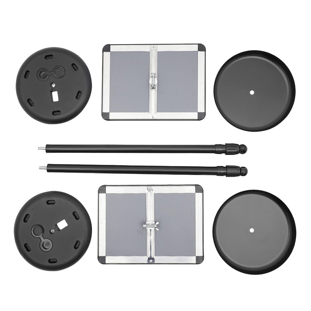 Sign Stand, Sign Holder Stand, Sign Holder Stand with Base Description Our sign stand can display posters, advertisements, etc. High-quality material makes it sturdy and durable. It can rotate 360 ° and be adjusted to any angle, and its height can also be freely adjusted for your convenience. Whether promoting new products, enhancing brand image, or conveying messages, it is your ideal choice. Key Features Build to Last: Made of stainless steel, this product is rust-resistant, wear-resistant, and deformation-resistant, ensuring your long-term use. Highly Practical: It can be used horizontally or vertically to hold documents, posters, announcements (all not included), etc. It is widely used on so many occasions, for r 2Pcs Sign Stand With Adjustable Height∠, Sign Holder Stand W/ Fillable Base Sign Stand, Sign Holder Stand, Sign Holder Stand with Base Description Our sign stand can display posters, advertisements, etc. High-quality material makes it sturdy and durable. It can rotate 360 ° and be adjusted to any angle, and its height can also be freely adjusted for your convenience. Whether promoting new products, enhancing brand image, or conveying messages, it is your ideal choice. Key Features Build to Last : Made of stainless steel, this product is rust -resistant , wear-resistant , and deformation-resistant , ensuring your long-term use. Highly Practical: It can be used horizontally or vertically to hold documents, posters, announcements (all not included), etc. It is widely used on so many occasions, for restaurants to display their special cuisine; for shops to highlight discount prices; for administrators to post announcements; for churches to place a notice, and for public places to make a reminder. Thoughtful Design: The surface of the frame is protected by a UV-resistant PVC cover, which can keep the poster clear, resist harsh weather and sunlight, and prevent dirt and fingerprints. Easy to Adjust: The frame can rotate 360° and can be adjusted to any angle. In addition, its height can be freely adjusted ( 27.6-47.2 inches ) to make it suitable for various occasions. Generous Appearance: The b lack color scheme, rectangular frame, circular base, and smooth lines give this product a generous appearance, making it easy to blend into various occasions. Easy to Clean: It has a smooth surface and a simple structure, so you only need to wipe the dust with a towel (not included) regularly. Ideal Gift: It is an ideal gift for friends who own stores to showcase their prices. Customer Service: We stand behind all our guests and look forward to assisting you with your purchase. It is our pleasure to answer your confusion and questions. The end of the story between us is definitely not "we sell and you buy". Details Rubber Base: You can add water/sand (not included) to it to increase its stability, making it resistant to strong winds and less prone to shaking. 2PCS: They allow you to showcase more content. Rounded Frame: Its smooth corners and front opening design allow you to quickly change your posters or advertisements (not included) according to different promotional activities. Application It is suitable for shopping malls, retail stores, hotels, guesthouses, supermarkets, business halls, reception areas, exhibition halls, restaurants, offices, schools, banks, post offices, hospitals, etc. How to Install 1. Open the packaging and check if the accessories are complete. 2. Put the base and cover plate together first. 3. Place the base in place and screw the straight rod onto it. 4. Align with the hole position and easily insert the bolt. 5. Pay attention to the alignment between the four corners of the screw and the position of the gear plate hole. 6. Screw in the lock cap and complete installation. Specification Material: Stainless S teel, Rubber, PVC Color: Black Shape: Rectangle Style: Modern Number of Items: 2 Assembly Required: Yes Mount Type: Freestanding Adjustable Height Range: 70-120cm/27.6-47.2in Base Diameter: 25cm/9.8in Package Size: 69*35*5cm/ 27.17*13.78*1.97in Gross Weight: 3.5kg/ 7.72lbs Net Weight: 3kg/ 6.61lbs Package Included 2* Sign Stands Notes Please note that this product does not include posters, advertisements, etc. Please allow the slight color difference caused by the shooting light and 1-3cm error due to manual measurement, and make sure you do not mind before ordering. Payment Delivery details Terms of sales About us Contact us Payment We accept ebay payment 。 Fees such as import duties, taxes are not included in the item price or shipping costs. These charges are the buyer's responsibility. Delivery details Shipping: 2-9 working days to: USA Terms of sales We maintain high standards of excellence and strive for hundred percent customer satisfaction. Feedback is very important to us. We hope that you contact us immediately before you give neutral or negative feedback, so that we can address your concerns. It is impossible to address issues if we do not know about them! About us Your satis faction is our ultimate goal. We work hard to earn your trust and future business. Our certified technicians have tested each item before shipping. The unit comes with 1 year limited warranty on all manufacturing defects. a) If you receive a defective item, you may return it or ask for a discount. Please contact us within 14 days after you receive the package. b) What you returned must be intact and in its original packaging as re? u. Customer is responsible for shipping costs of the returned item. c) We will cover the cost of shipping back t with the shipping rate indicated in the registration page. We will send you a new unit or refund the full payment you paid. Thank you. Contact us Business Hour Business Hour: Monday To Friday: 8:30 AM to 5:00 PM (Beijing China time) Due to time zones, our reply to your questions may not be immediately. But within above working time, we will reply your email within 24 hours. If it's non-workdays, please kindly be patient and wait ti