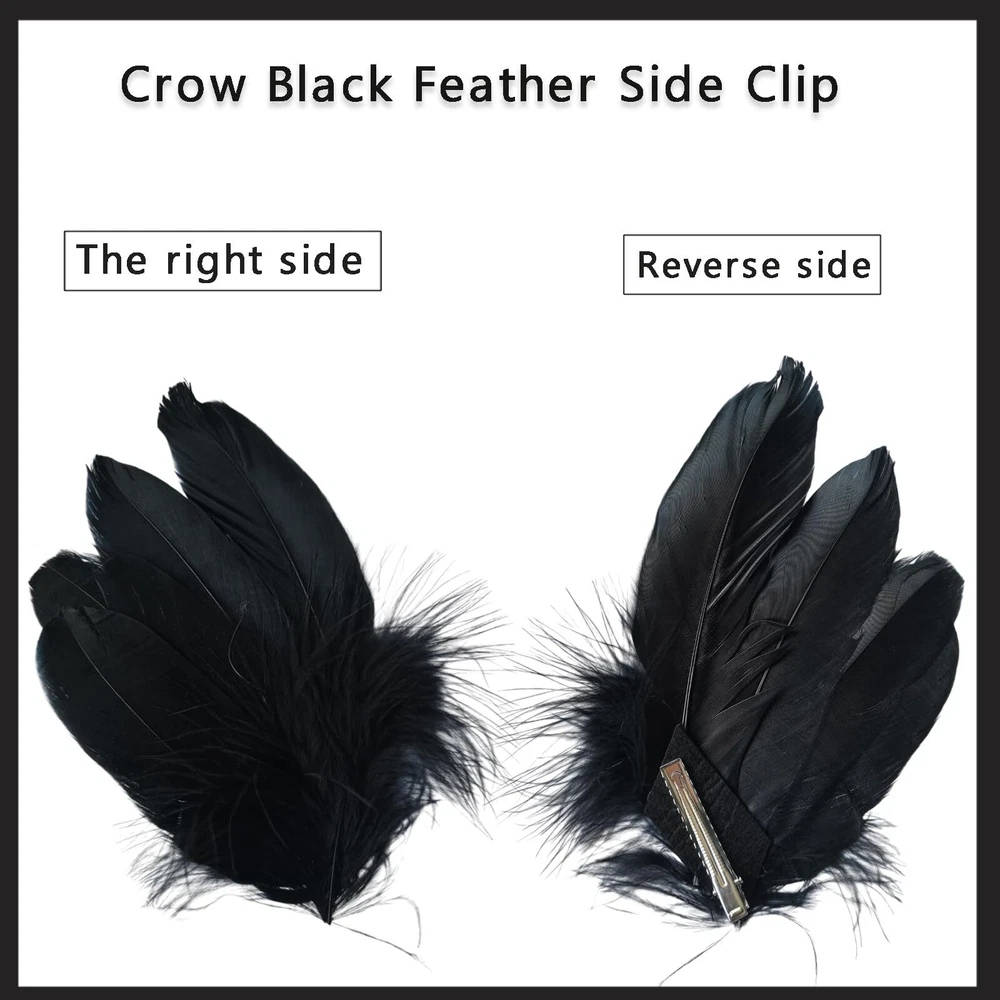 Halloween Black Feather Hair Clip for Crow Hair Accessories Item type: Feather Hair Clip Material: Feather and alloy Gender: Women Color: black Package include:2 Pcs Hair Clip Item Type: Headwear You will get 2pcs black feather hair clip for stage performance headpiece Halloween crow cosplay costume Crow Character Costume Accessories: Our black feathers can be used to play the black Crow theme Material: Our feather hair clip for women are made of alloy and feather, decorate with feather, the clip design easy to take and take off, and can hold the hair firmly and won't hurt you skin Exquisite Design: The women's feather hair accessories with black feather ornament, soft feather will add more charming and elegant for your hair, it can be combined with a variety of clothes,especialy black Occasions: Black feather hair clip are suitable for Halloween party, stage hair design