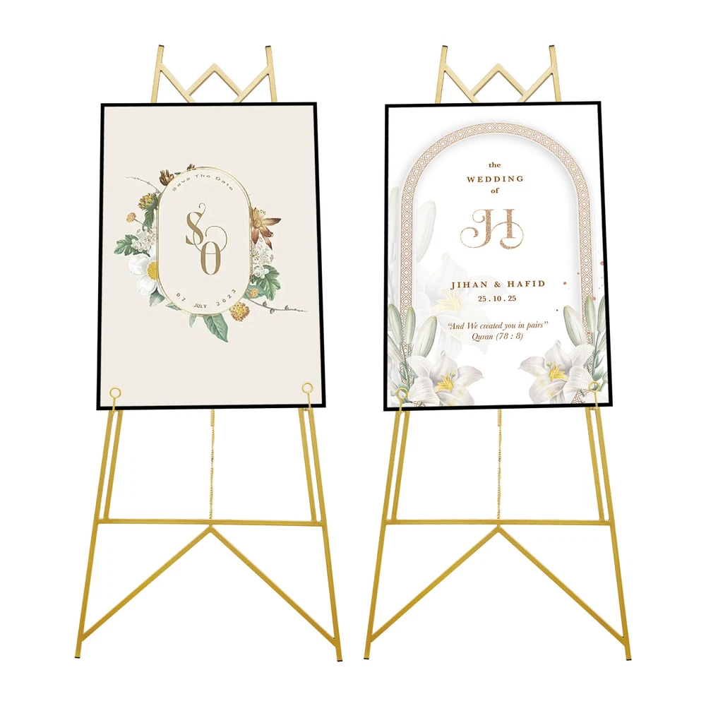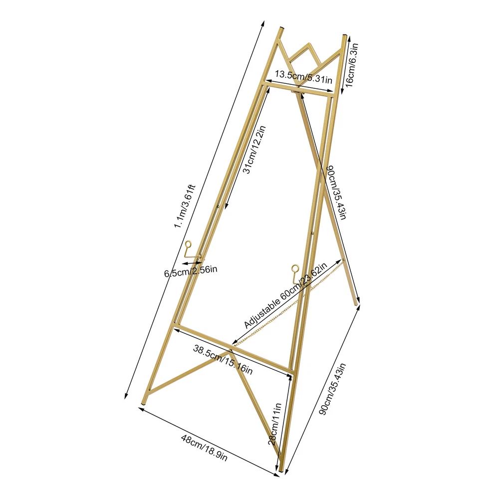 Specification Material: Steel Color: Gold Process: Nano Baking Paint Assembly Required: Yes Number of Holes: 4 Maximum Load-bearing Capacity: 10kg/22.05lbs Gross Weight: 3.5kg/7.7lbs Net Weight: 3.3kg/7.3lbs Adjustable Chain Length: 60cm/23.62 in Hook Length: 6.5cm/2.56in Total Side Length of Display Side: 1.1m/3.61ft Product Size(L*W): 90*48cm/35.43*18.9in Package Size: 115*52*5cm/45.3*20.5*1.97in 2Pcs Easel Stands Steel Poster Easel Easel Tripod Wedding Art Exhibition Display Description Are you still struggling to choose a cost-effective easel stand? Our product can solve your troubles. The combination of high-quality materials and exquisite craftsmanship ensures its strength and durability. Its tilt and hook position can be adjusted to meet your usage needs. With its generous appearance, it can well embellish various activity venues. In short, it is an excellent assistant for displaying photo frames or posters, etc! Key Features Build to Last: Made of steel with a nano baking paint process, this product is sturdy, wear-resistant , and rust-proof , ensuring your long-term use. Show Your Happiness: You can place wedding photo frames(not included) on this product, showcasing your happiness and conveying love. Adjustable Inclination: The tilt of the easel stand can be adjusted by the chain (23.62 inches) according to the display need, which is convenient. Adjustable Hole Positions: The adjustable holes on the easel stand allow the position of the hooks to be changed to accommodate photo frames of different sizes, meeting your usage needs. Easy to Use: You just need to unfold the easel stand, fasten the chain, and put posters or images(not included) to be displayed on the hook, which is simple . Easy to Store & Carry: The detachable design allows you to easily transport it and store it in the corner of your warehouse without taking up too much space. 2-Piece Pack: Two easel stands can display richer photos and content for your party or ceremony, making your event more attractive. Generous Appearance: The smooth lines and golden color scheme give this product a generous appearance, decorating the event venue well. Easy to Clean: It has a smooth surface and a simple structure, so you only need to wipe the dust or residue with a towel after use. Buy with Confidence: We are honored that you have chosen our product. We have sufficient confidence in the quality of the product so that you can buy it confidently. But if you have any questions, you can contact our customer service, he will patiently answer and solve your problems. Details Hook Design: It facilitates the placement of photo frames or posters(not included) and provides support to prevent them from moving easily. Triangular Structure: The triangular structure provides stable support for this product, making it stable and less prone to shaking. Application It is suitable for shopping malls, restaurants, supermarkets, cinemas, etc. for weddings, celebrations, parties, art exhibitions, car shows, promotions, and other events. It is used for displaying information such as price lists, advertisements, photo frames, and posters. Specification Material: Steel Color: Gold Process: Nano Baking Paint Assembly Required: Yes Number of Holes: 4 Maximum Load-bearing Capacity: 10kg/22.05lbs Gross Weight: 3.5kg/7.7lbs Net Weight: 3.3kg/7.3lbs Adjustable Chain Length: 60cm/23.62 in Hook Length: 6.5cm/2.56in Total Side Length of Display Side: 1.1m/3.61ft Product Size(L*W): 90*48cm/35.43*18.9in Package Size: 115*52*5cm/45.3*20.5*1.97in Package Included 2* Easel Stands Notes Please allow the slight color difference caused by the shooting light and 1-3 cm error due to manual measurement, and make sure you do not mind before ordering. Payment Delivery details Terms of sales About us Contact us Payment We accept ebay payment 。 Fees such as import duties, taxes are not included in the item price or shipping costs. These charges are the buyer's responsibility. Delivery details Shipping: 2-9 working days to: USA Terms of sales We maintain high standards of excellence and strive for hundred percent customer satisfaction. Feedback is very important to us. We hope that you contact us immediately before you give neutral or negative feedback, so that we can address your concerns. It is impossible to address issues if we do not know about them! About us Your satis faction is our ultimate goal. We work hard to earn your trust and future business. Our certified technicians have tested each item before shipping. The unit comes with 1 year limited warranty on all manufacturing defects. a) If you receive a defective item, you may return it or ask for a discount. Please contact us within 14 days after you receive the package. b) What you returned must be intact and in its original packaging as re? u. Customer is responsible for shipping costs of the returned item. c) We will cover the cost of shipping back t with the shipping rate indicated in the registration page. We will send you a new unit or refund the full payment you paid. Thank you. Contact us Business Hour Business Hour: Monday To Friday: 8:30 AM to 5:00 PM (Beijing China time) Due to time zones, our reply to your questions may not be immediately. But within above working time, we will reply your email within 24 hours. If it's non-workdays, please kindly be patient and wait till Monday. Please contact us with ebay message. Please feel free to contact us if you have any questions. Monday To Friday: 8:30 AM to 5:00 PM (Beijing China time) Due to time zones, our reply to your questions may not be immediately. But within above working time, we will reply your email within 24 hours. If it's non-workdays, please kindly be patient and wait till Monday. Please contact us with ebay message. Please feel free to contact us if you have any questions.