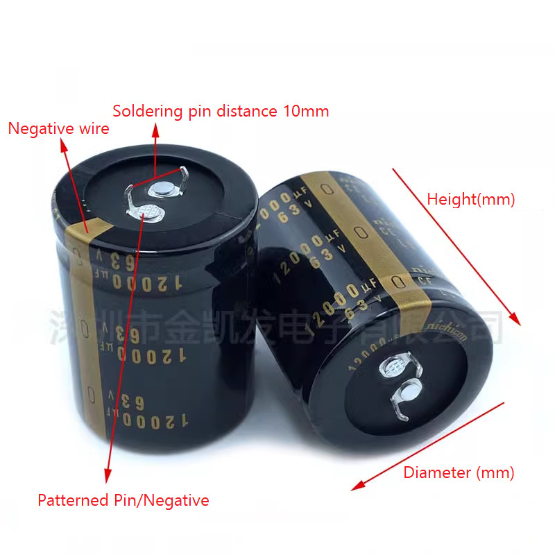 Original Capacitors,for Inverter Audio Filter Communication Power Supply LED Driver Power Supply Switching Power Supply Welding Machine Spot Welder Inverter Power Supply Electric Power Meter LED Energy Saving Lamp Household Electric Appliances Computer Equipments Automobiles and so on. Brand:Nichicon / Nippon Chemi-Con Model: 63V12000UF Size: 30X50 30X70 35X45 35X50 35X60 35X70(Diameter X Height) Temperature resistance: 85℃/105℃