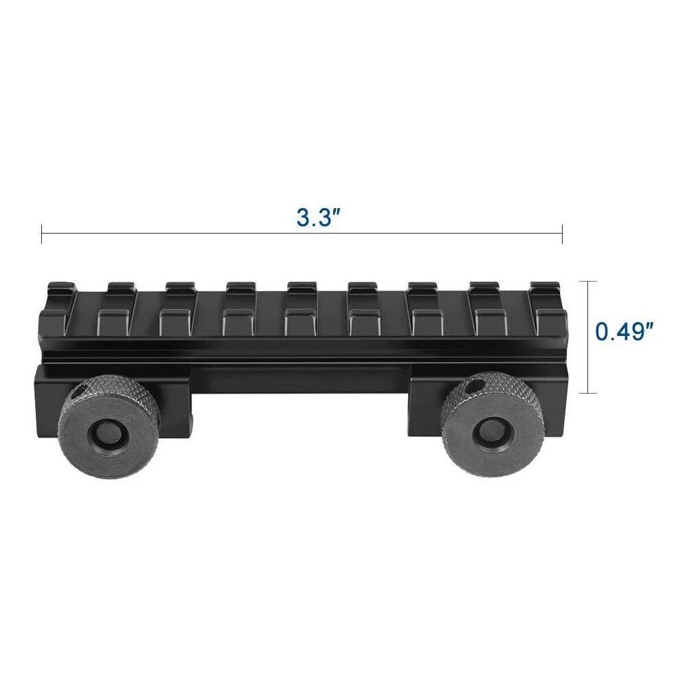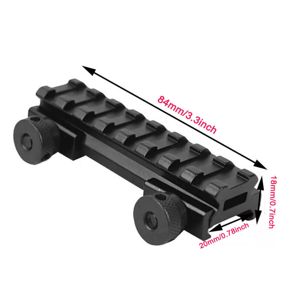 45 Degree Offset 1 inch Side Mount Holder Flashlight Laser Weaver Picatinny Rail 11.9 USD Free shipping 8 Slots Riser Mount See Through Scope Base Mount for 20mm Picatinny weaver Rail 15.95 USD Free shipping Rifle Scope Mount 1" 25.4mm / 30mm Picatinny Rail Flap Top Dual Rings Cantilever 21.95 USD Free shipping 34mm/1.34" Barrel Clamp Scope Rings Adaptor Mount with 4 Slots Picatinny Rail 15.99 USD Free shipping Front and Rear Flip Up 45 Degree Offset Rapid Transition Backup Polymer Sight 22.59 USD Free shipping 2 Pack 1" Offset 45 Degree Ring Side Mount Picatinny Rail for Scopes Laser Sight 17.99 USD Free shipping 1/2 Pcs QD 1" / 30mm High Profile Rifle Scope Ring Mount Picatinny Weaver Rail 15.95 USD Free shipping 3 Slots Super Slim Slanted Riser Scope Mount Fit 20mm Base Picatinny Weaver Rail 14.59 USD Free shipping 2 Pairs Rifle Scope Mount Ring 1 Inch High Medium Profile Picatinny Weaver Rail 20.59 USD Free shipping 1" inch See Through Riser Scope Rail Mount Base Large 14 Slots Picatinny Weaver 16.95 USD Free shipping 1 INCH/30mm or 34mm Barrel Scope Ring Mount Adapter 20mm Weaver Picatinny Rail 13.59 USD Free shipping QD 3 Slots 0.83" Medium Profile Compact Riser Mount Scope Weaver Picatinny Rail 13.59 USD Free shipping 1Inch/ 30mm Dual Ring Cantilever Rifle Scope Mount Rings for 20mm Picatinny Rail 21.96 USD Free shipping 3 Slots 1" Scope Riser Mount Fit Picatinny Weaver Rail for Optics Red Dot Sight 12.9 USD Free shipping For Mossberg 500 Remington 870 12GA 1" Tube Picatinny Laser Torch Mount 12.9 USD Free shipping Scope Barrel Mount 1" - 25mm & 30mm Ring Adapter with 20mm Weaver Picatinny Rail 12.9 USD Free shipping 1" High Profile Compact Riser Mount 3 Slot Fit Riflescope Picatinny Weaver Rail 13.59 USD Free shipping QD 3 Slots 0.5" Low Profile Compact Riser Rail Mount Rifle Scope Picatinny Rail 12.9 USD Free shipping Features: Constructed by aluminum alloy in andoized matte black finish. Quick release Thumb tightening system, mounts to a common 20mm rail system. See Through design allows the users to see the iron sights when mounted. Specifications: Material: aluminum alloy Length: 85mm Height: 18.5mm Rail Type: 20mm Picatinny/Weaver Weight: 86g Rise: 1/2 half Inch" Package: 2xMount