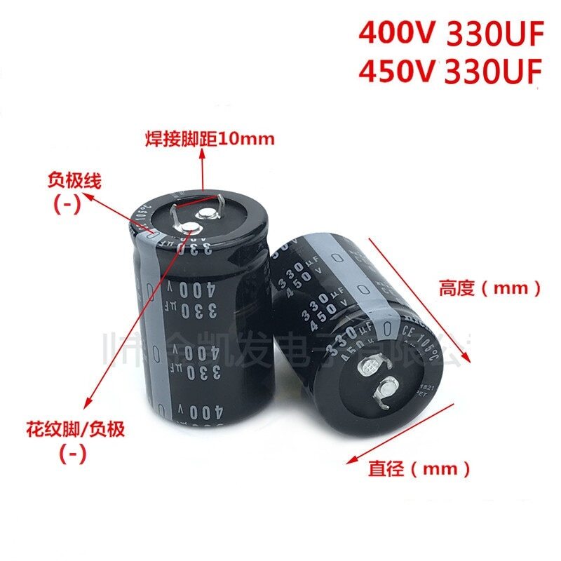 Brand:Nichicon Model: 400V33 0uF / 450V33 0uF Series: Send Randomly Capacitance tolerance:20% Sizes: 22X50 25X40 25X45 25X50 30X30 30X35 30X40 30X45 35X25 35X30 (Diameter X Height) Temperature: 105°C